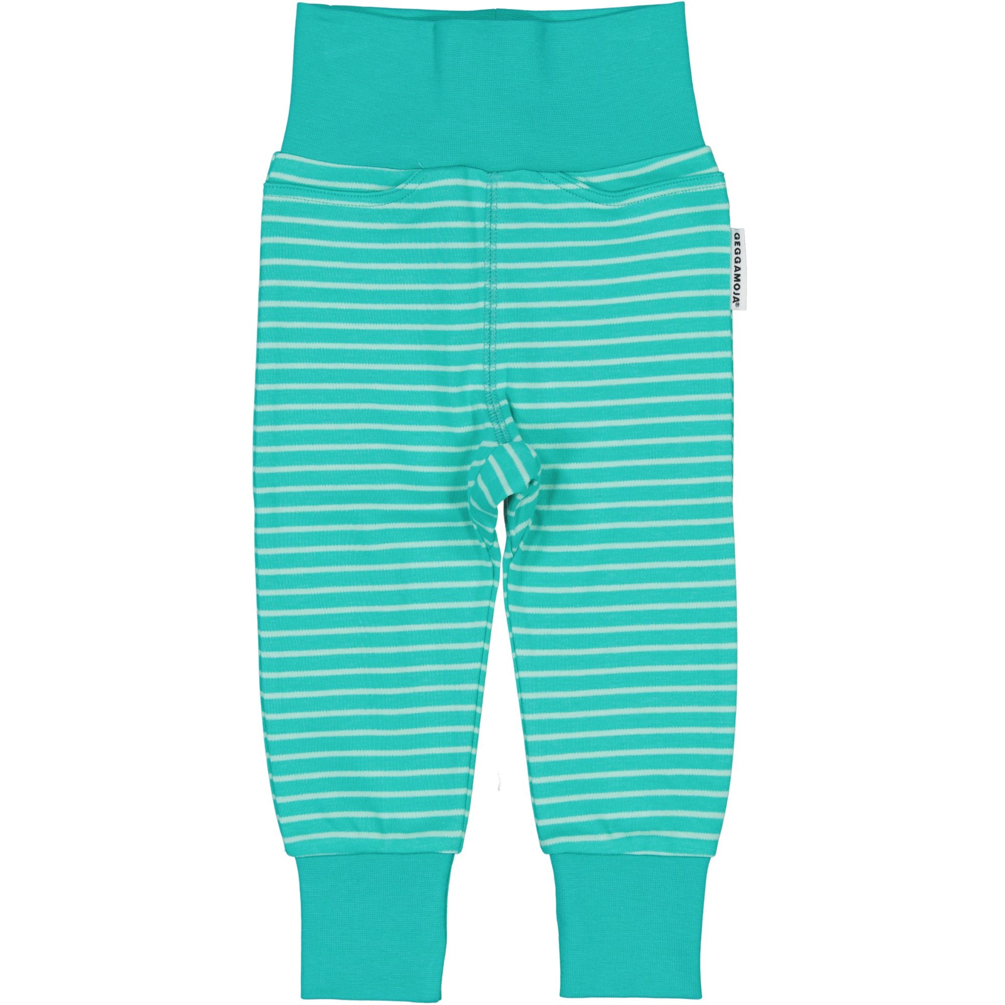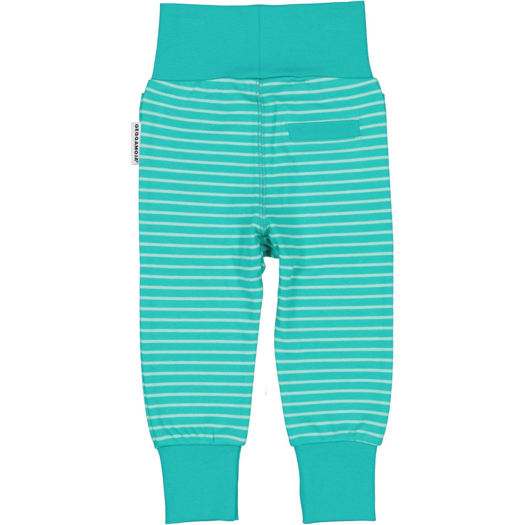 Babybyxa i randig trikå för de minsta, med mjuk bred mudd i midja och benslut. Muddarna viks med fördel upp och ner vart efter barnet växer.
