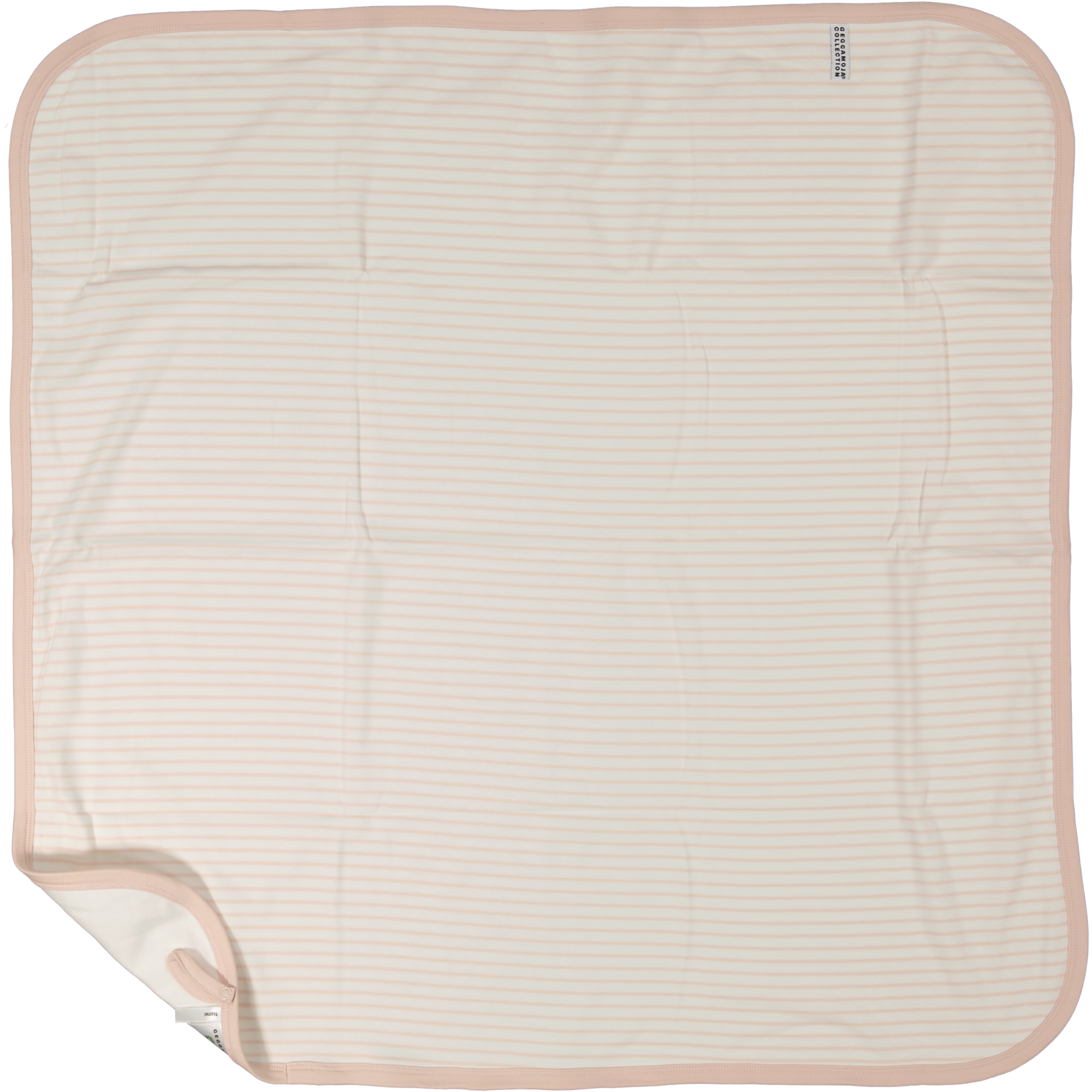 Babyfilt i interlock-bomull. Två lager tyg. Enfärgade kantband. Ögla för nappen. 75x75 cm.