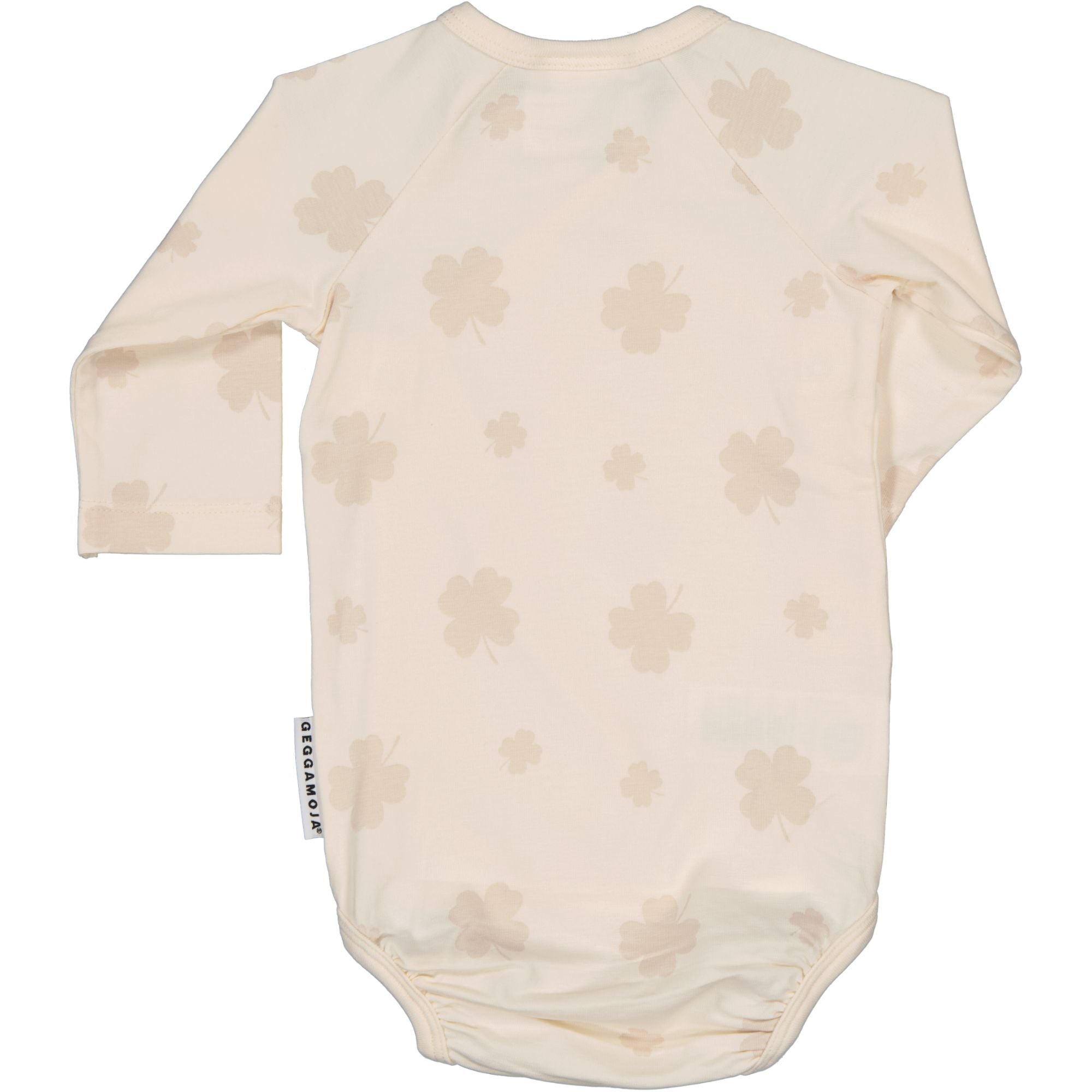 Långärmad mjuk och skön body i bambu. Starka tryckknappar i gren och i ärmsöm. Breda muddar i ärmslut. Tillverkad i materialblandning av bambu och ekologisk bomull. Bambu är lent och bekvämt mot huden och tillåter huden att andas. Dess termiska egenskaper, liksom ull och silke, gör att materialet känns varmt när det är kallt och svalt när det är varmt- ett perfekt material för barnkläder.