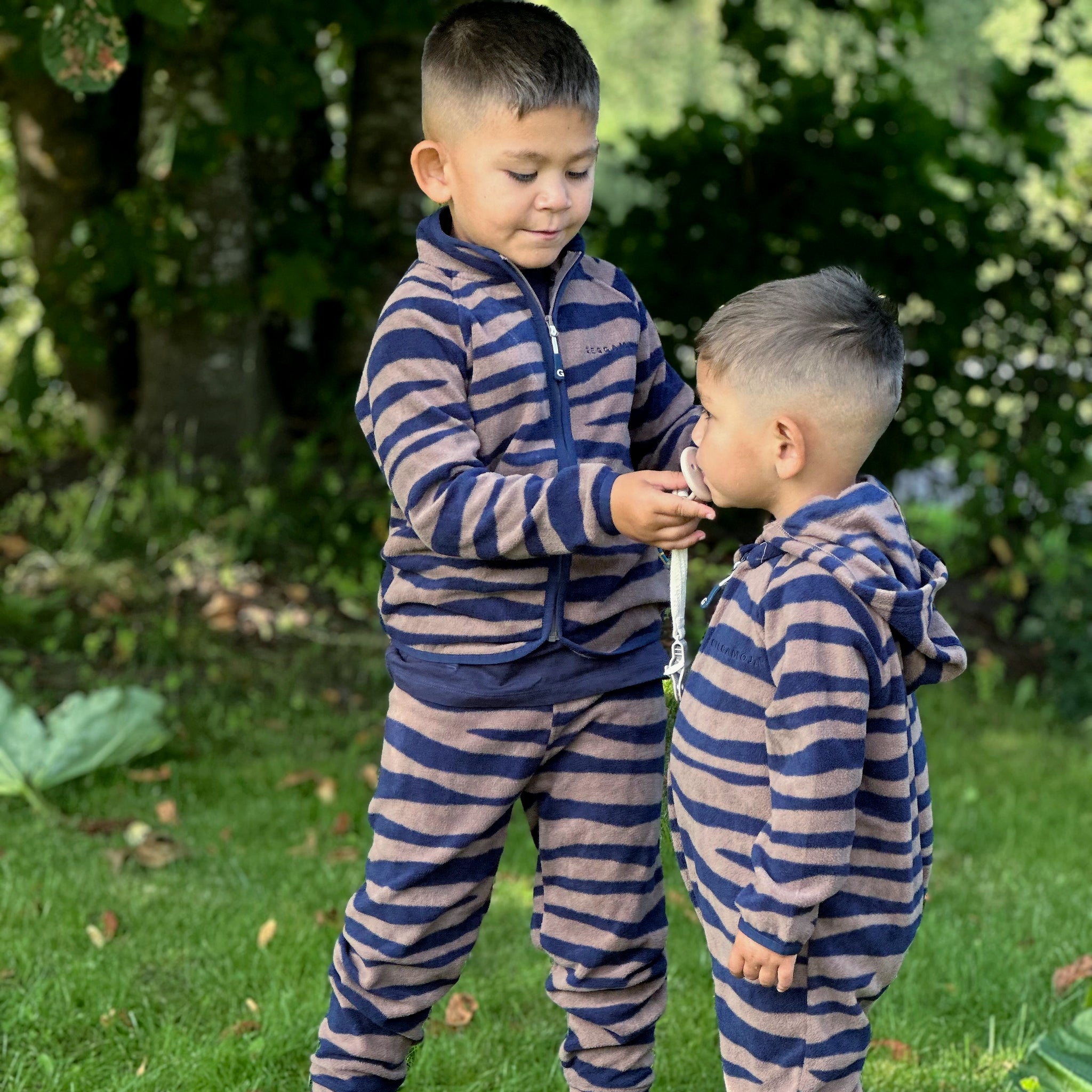 Detta fleece-set är lika mångsidigt som det är bekvämt – perfekt för både sommarens svala kvällar och vinterns kalla dagar. Bär det som ett värmande lager 2 under ytterkläder eller som det är när temperaturen tillåter. Jackan har elastiska kantband och blixtlås framtill. Den lite längre modellen med avrundad rygg ger extra skydd och en snygg passform. Byxan är lika genomtänkt, med mjuka muddar i fleece och en reglerbar hålresår i midjan, så att den alltid sitter perfekt – oavsett om det är lek i sandlådan eller mys i soffan som står på schemat. Ett användbart, mjukt och följsamt set som blir en favorit året om.
