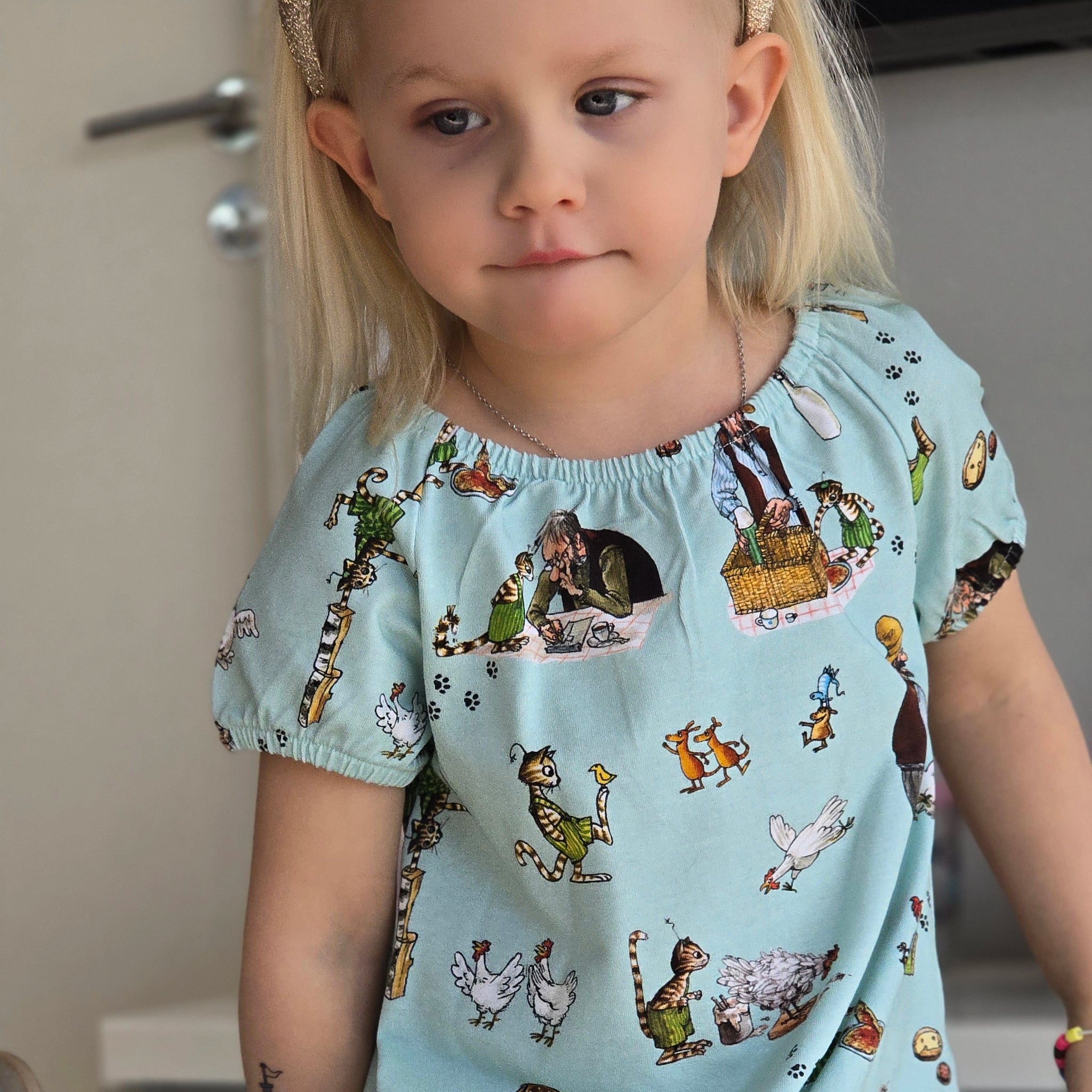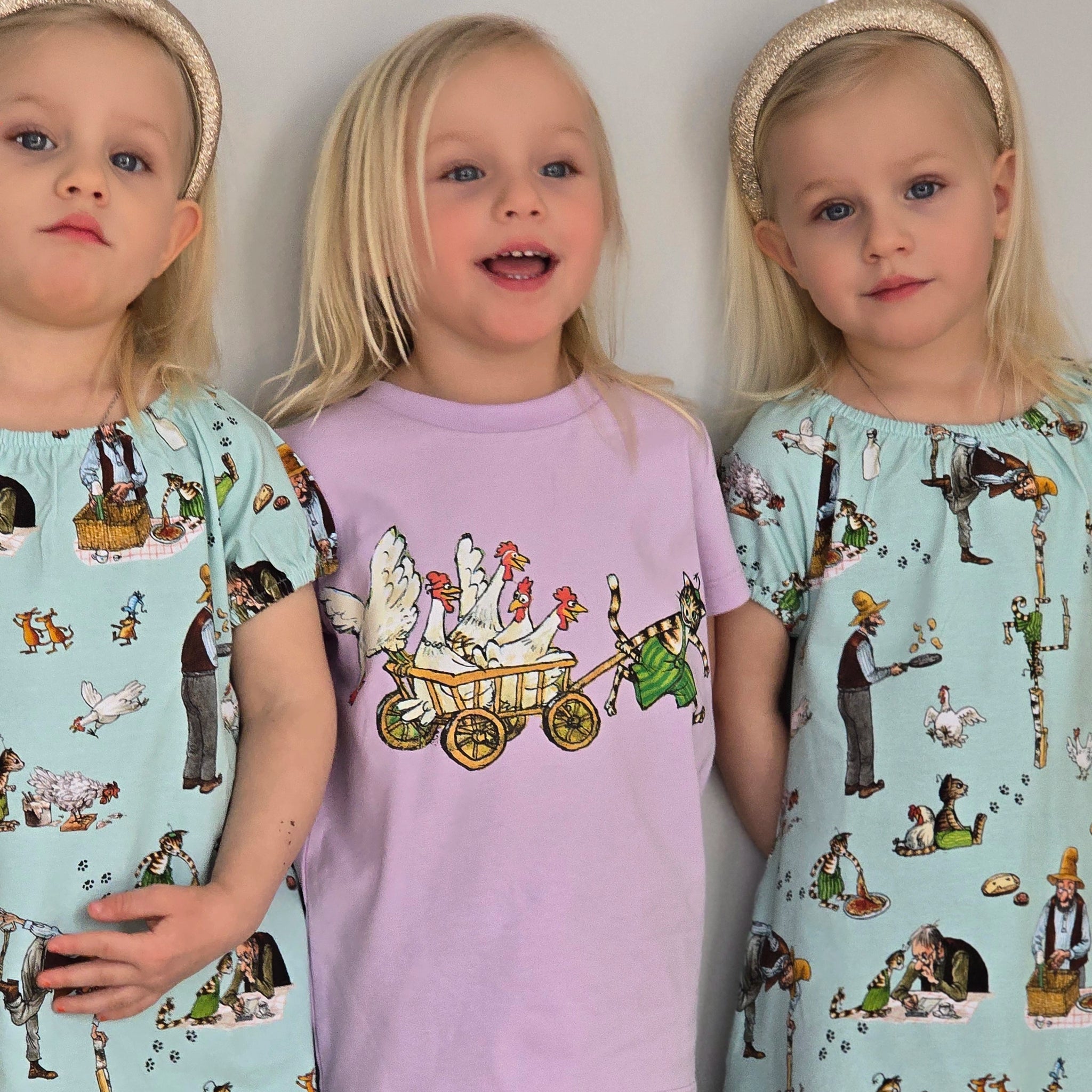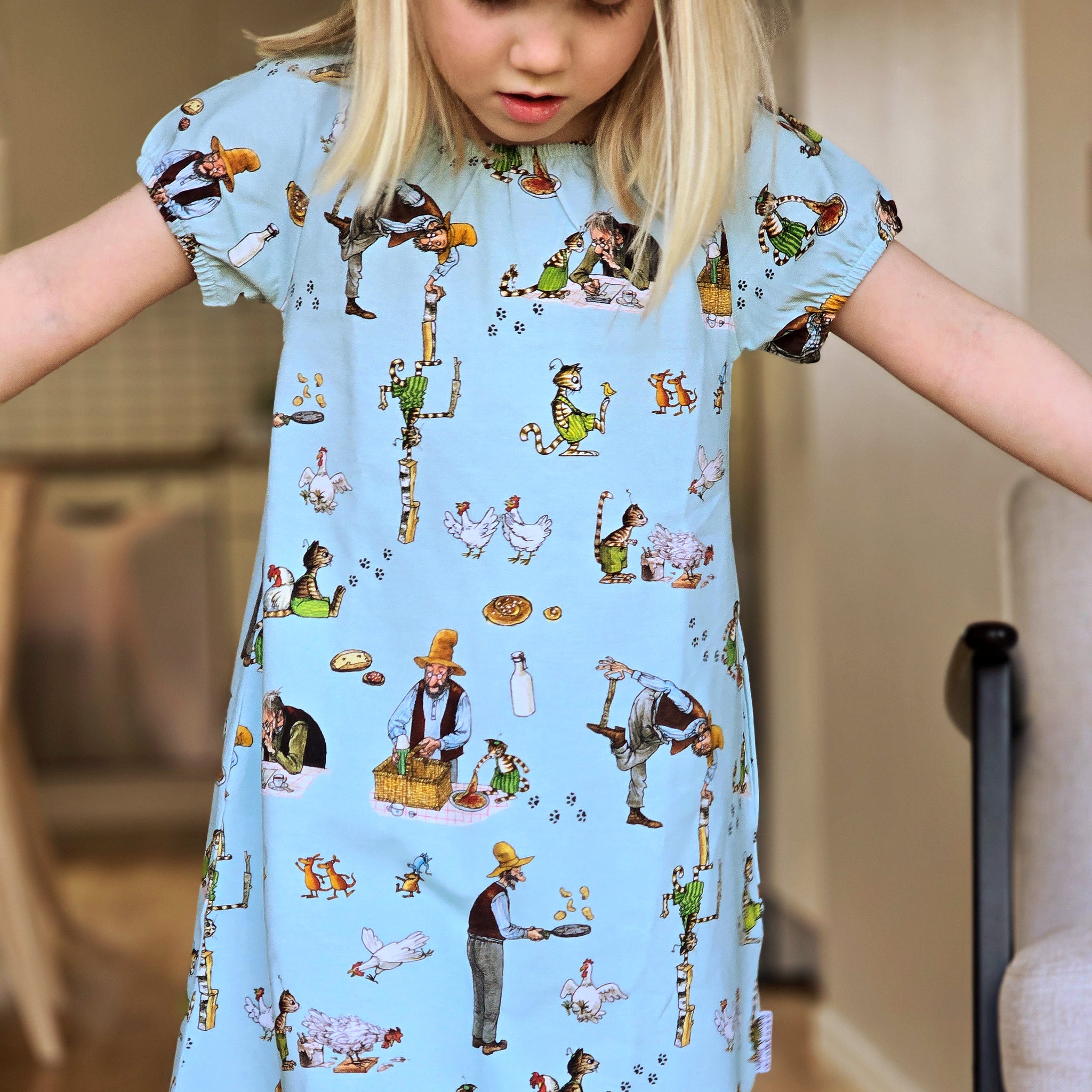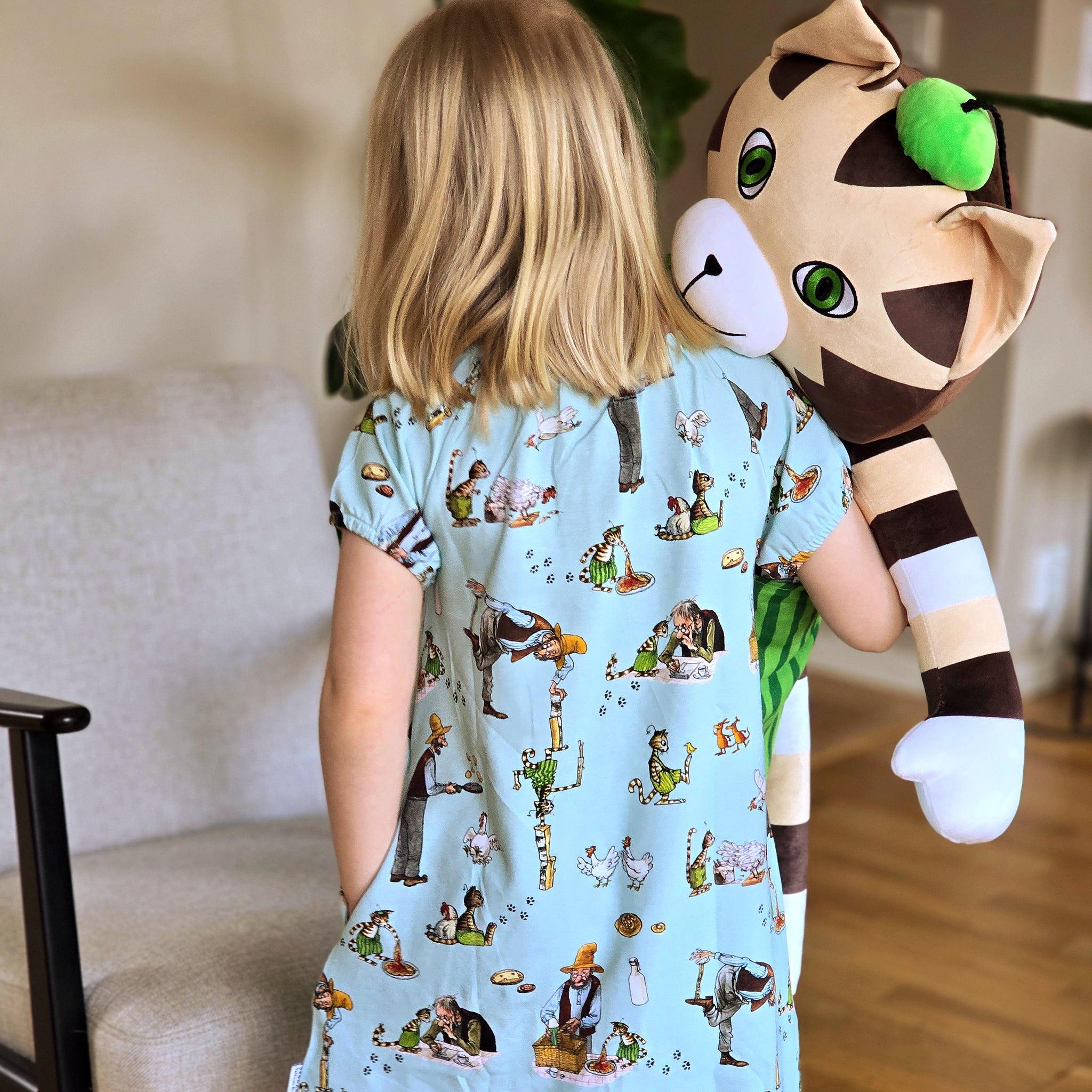 Singoallaklänning med Pettson och Findus som är mångas favorit. Skön modell med dolda fickor i sidorna.