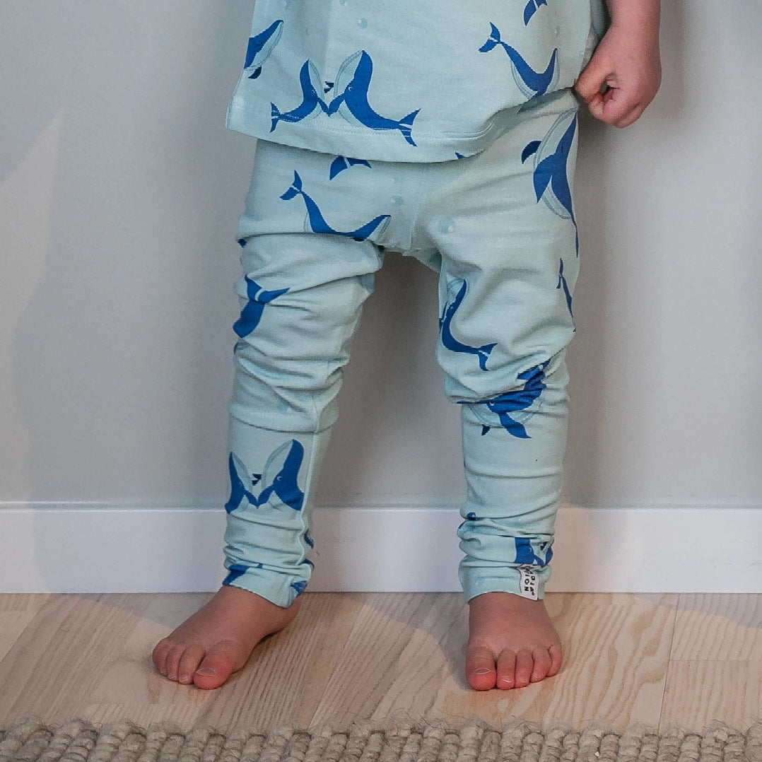 Leggings i bambu-trikå med justerbar resår i midjan. Matcha med t-shirt, tröjor eller klänning. Bambu är ett miljövänligt materialval, det odlas helt organiskt utan bekämpningsmedel och är 100% biologiskt nedbrytbart. Bambu är bekväm mot huden och låter huden andas. Dess termiska egenskaper, som ull och siden, gör att materialet känns varmt när det är kallt och kallt när det är varmt - ett perfekt material för barnkläder.
