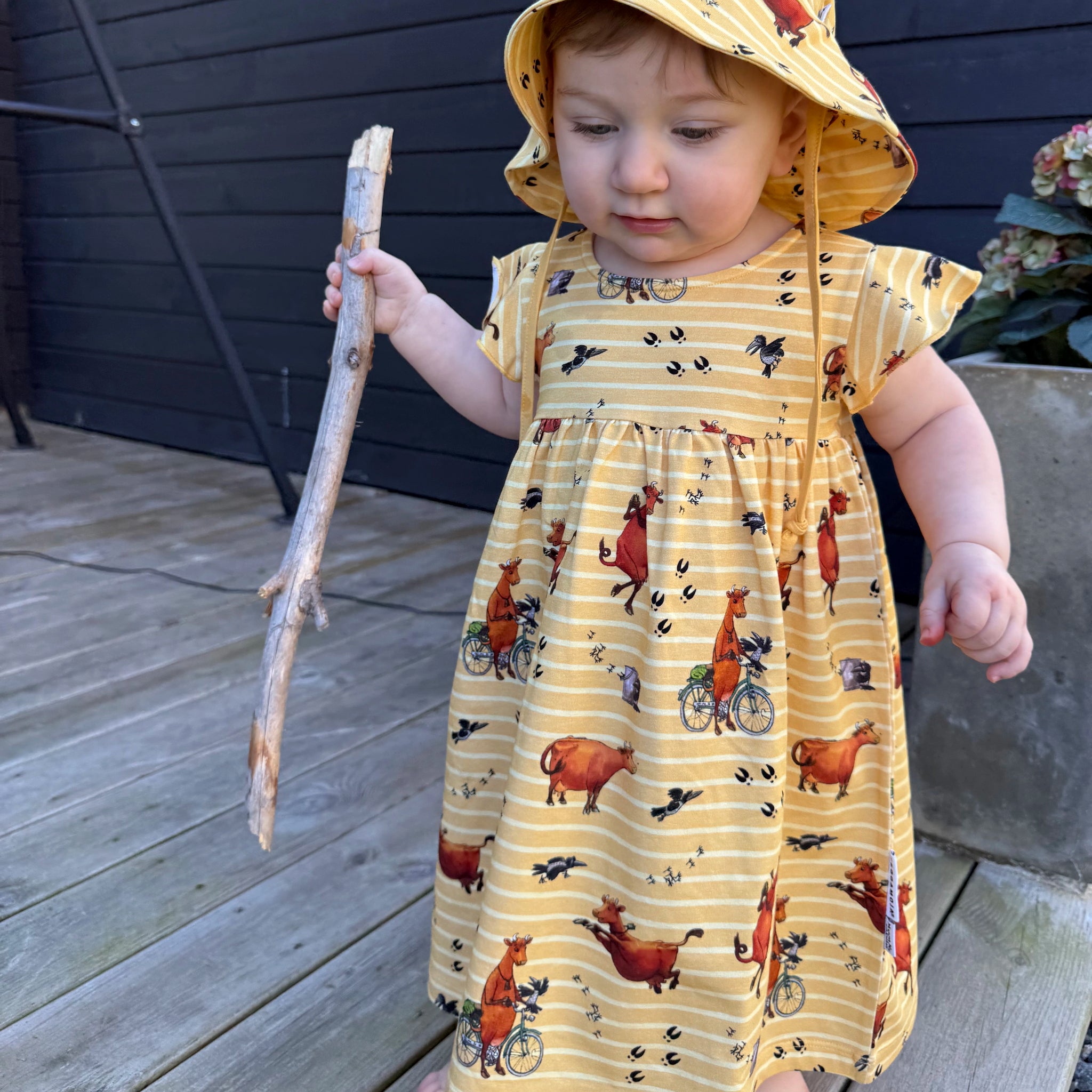 Volangklänningen med Mammu Mu print som är mångas favorit. Ärmlös med söta volanger vid axlarna.