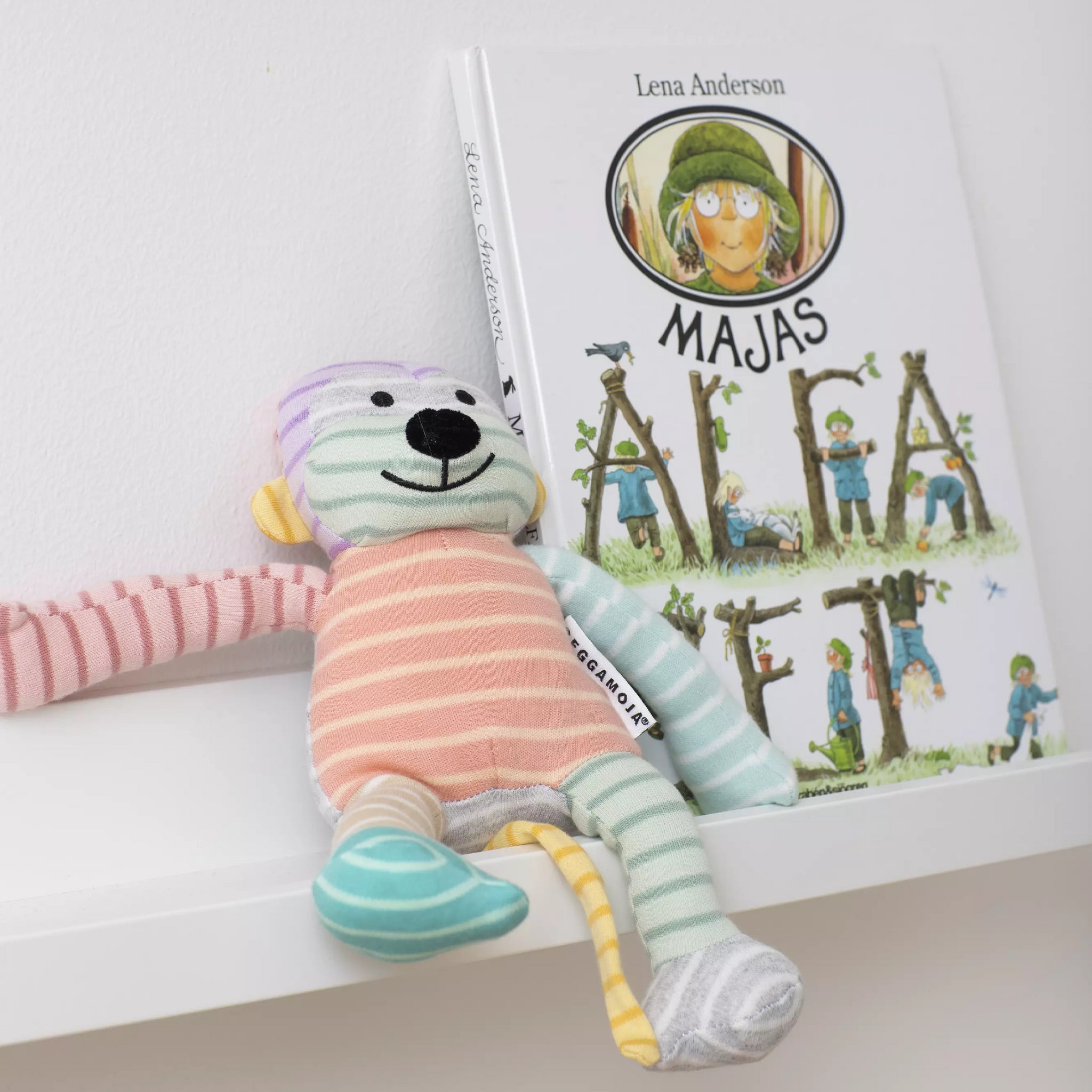 Varje Kokki är sydd av överblivna bitar från vår klädproduktion. En ihoplappad kompis som ger ditt barn sällskap och trygghet.