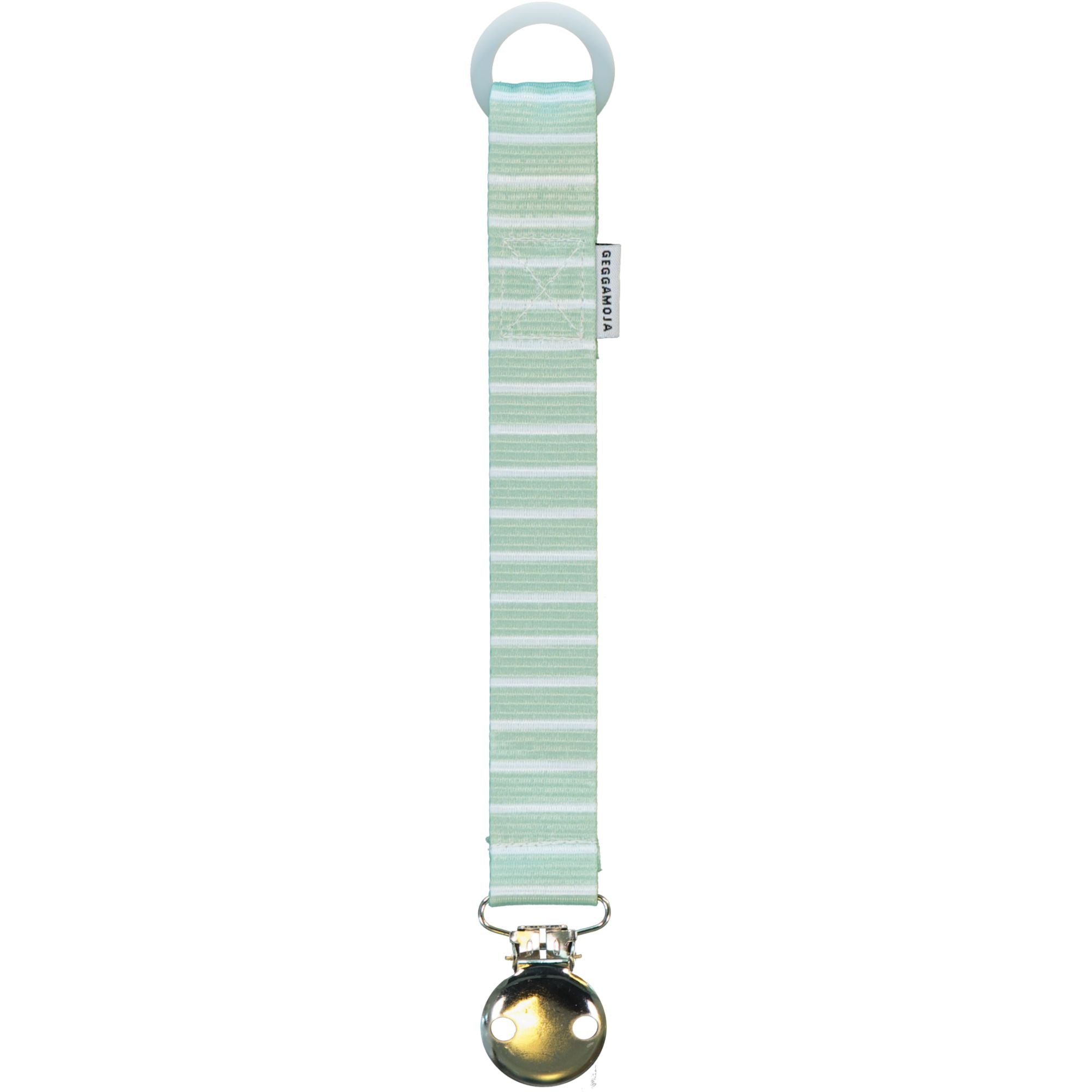 Napphållaren passar de flesta nappar på marknaden. Napphållaren är tillverkad av polyester med nickelfritt metallspänne och en elastisk ring av silikon.