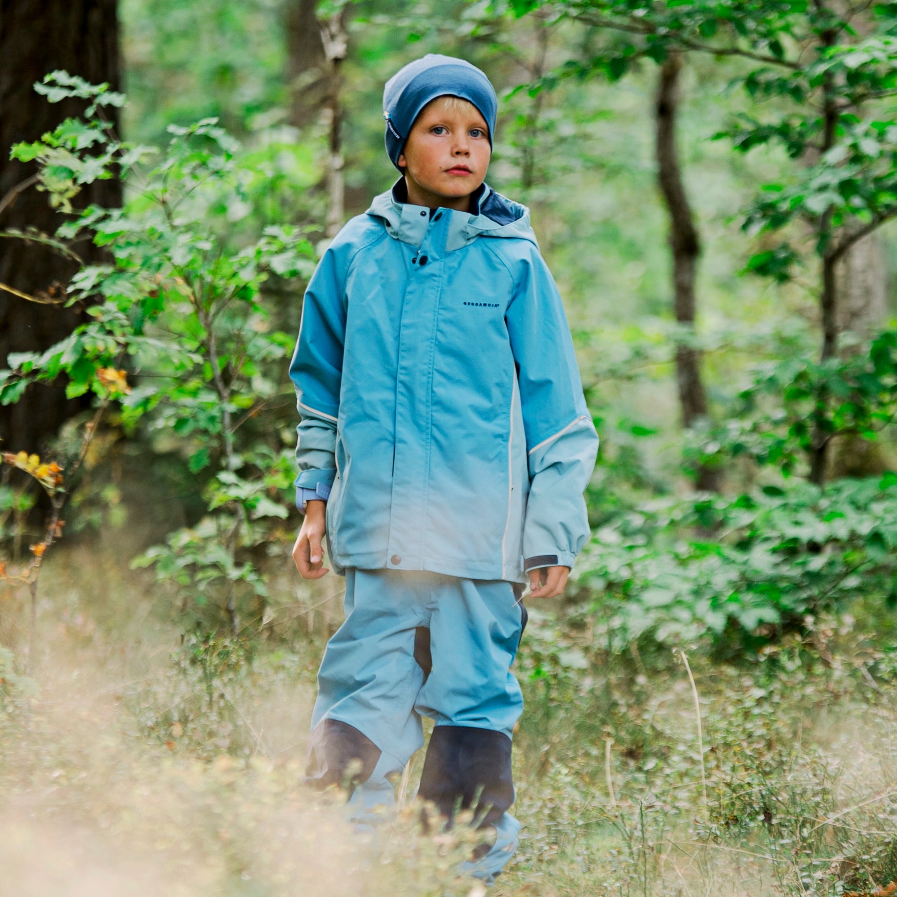 Detta funktionsplagg är utrustat med ett TPU-membran som ger ett vindtätt och vattenavvisande skydd samtidigt som materialet andas och transporterar bort fukt för att hålla barnet torrt och bekvämt. Mjukt mot huden och fritt från PFAS – det perfekta valet för små äventyrare som vill utforska världen på ett hållbart sätt.