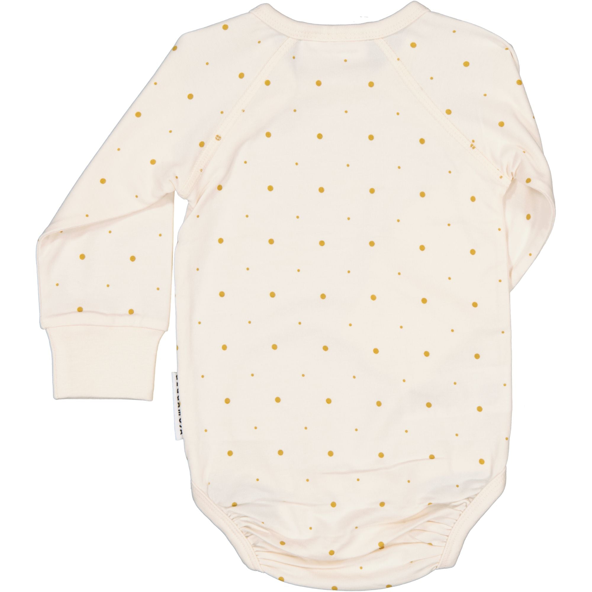 Långärmad mjuk och skön body i bambu. Starka tryckknappar i gren och i ärmsöm. Breda muddar i ärmslut.