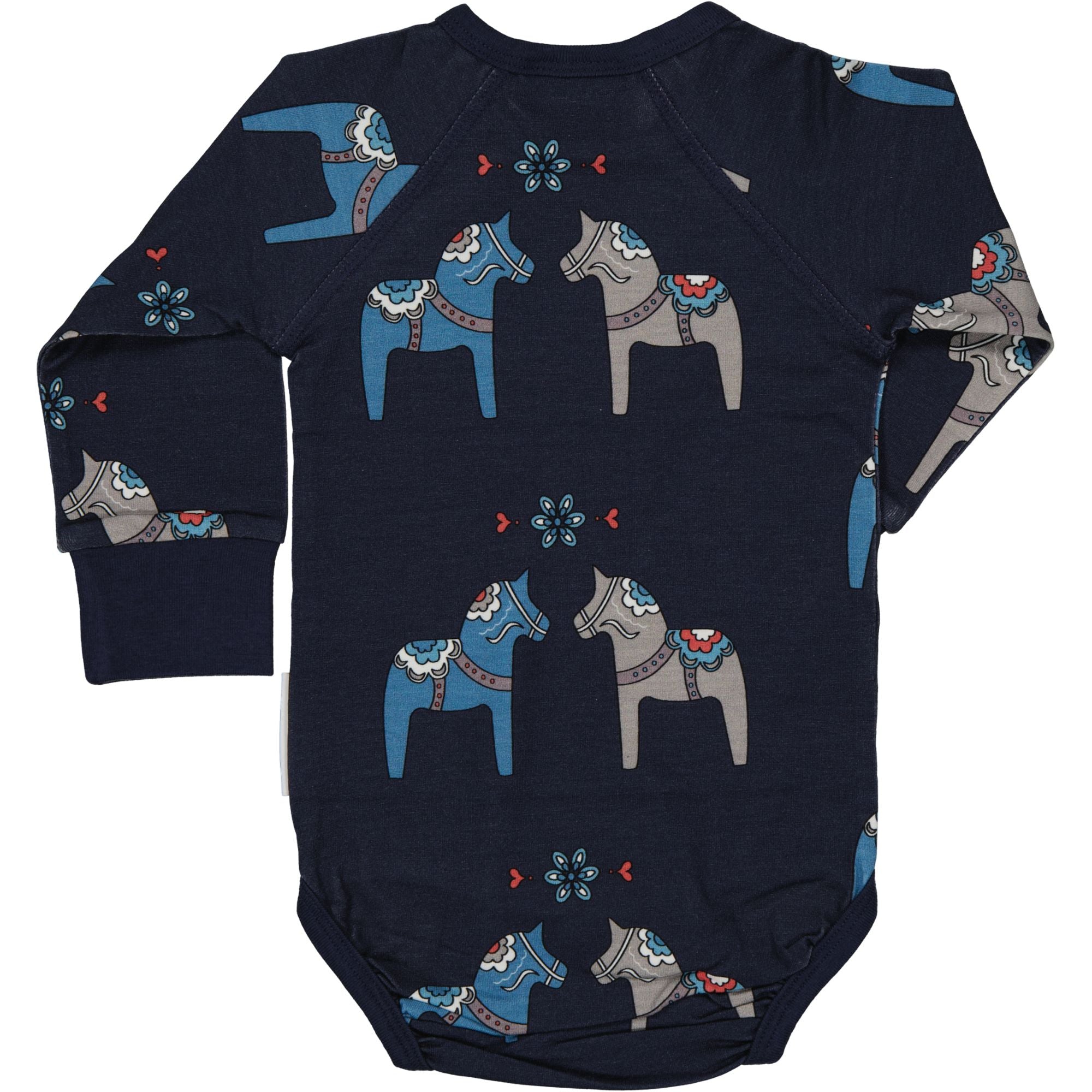 Långärmad mjuk och skön body i bambu. Starka tryckknappar i gren och i ärmsöm. Breda muddar i ärmslut.