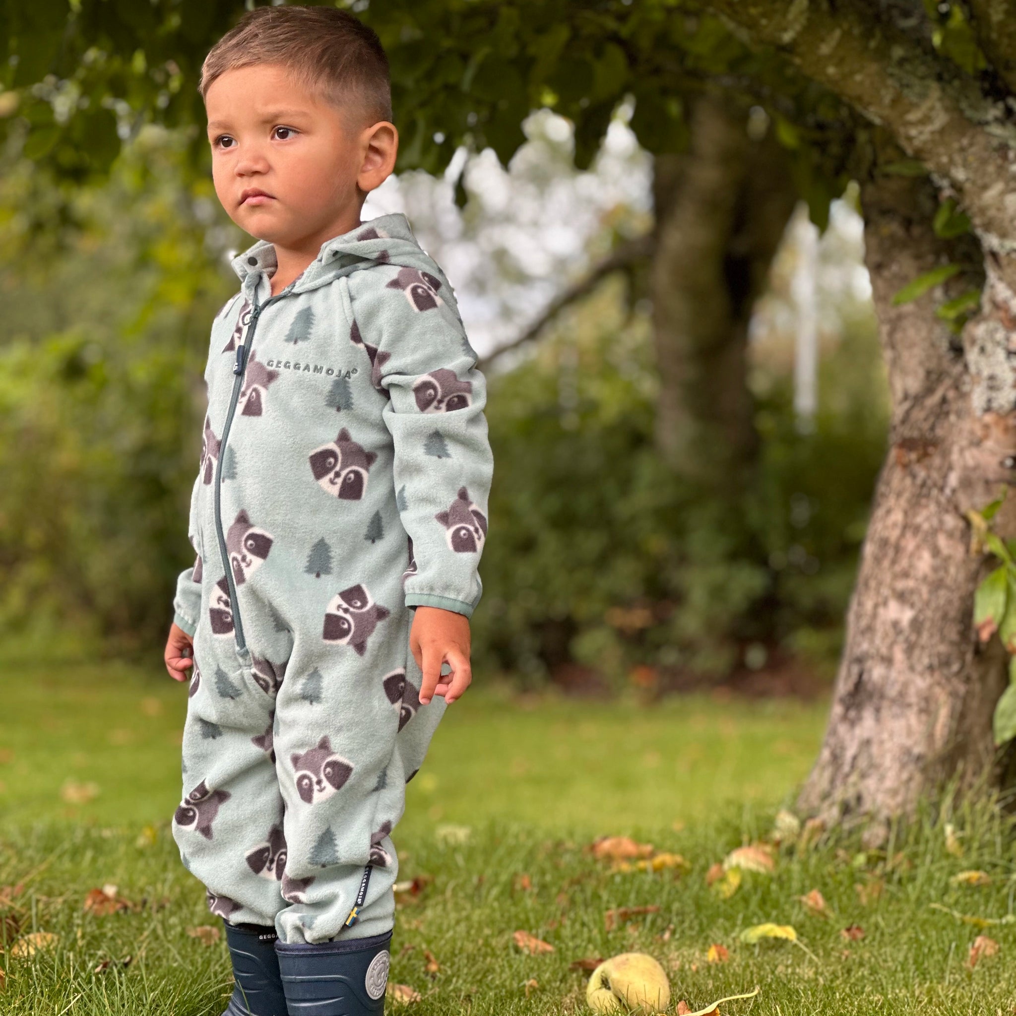 Skön fleeceoverall som passar perfekt som lager 2 under skaloverallen, eller till barn som ligger nerbäddade i vagnen. Under våren och svala sommarkvällar är den skön att krypa ner i. Luvan är avtagbar för bästa komfort. Våra fleeceplagg är behandlade med den miljövänliga som gör plagget vattenavvisande