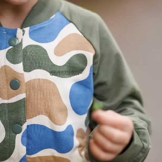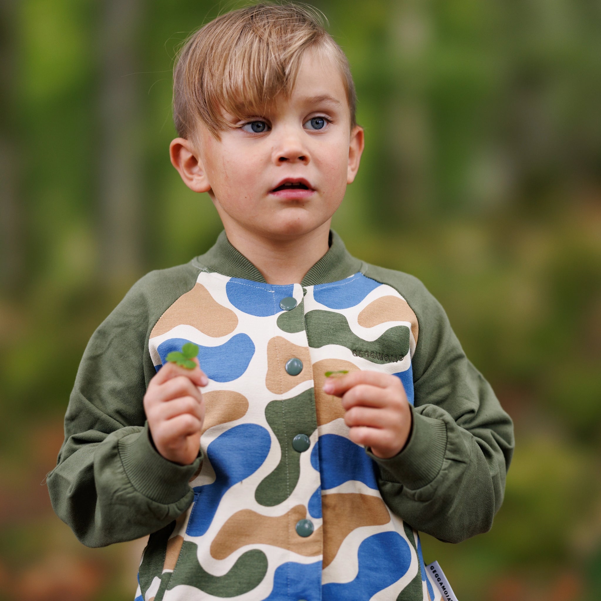 Tuff baseball-jacka i Terazzo-motiv, med tryckknappar och sidofickor. Jackan har mjuk borstad insida.