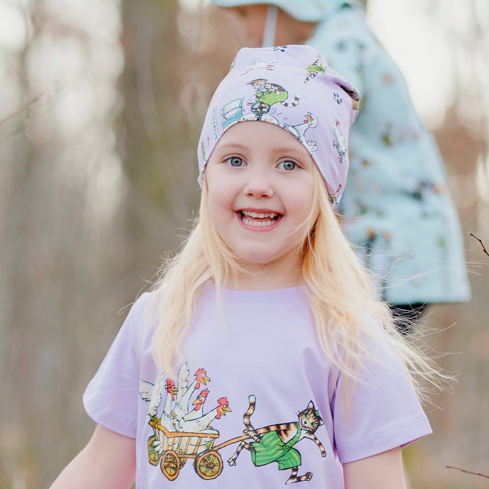 Mössa med Pettson och Findus. Mössan är i Ekologisk bomull och har Geggamojas härliga passform som passar alla, liten som stor.