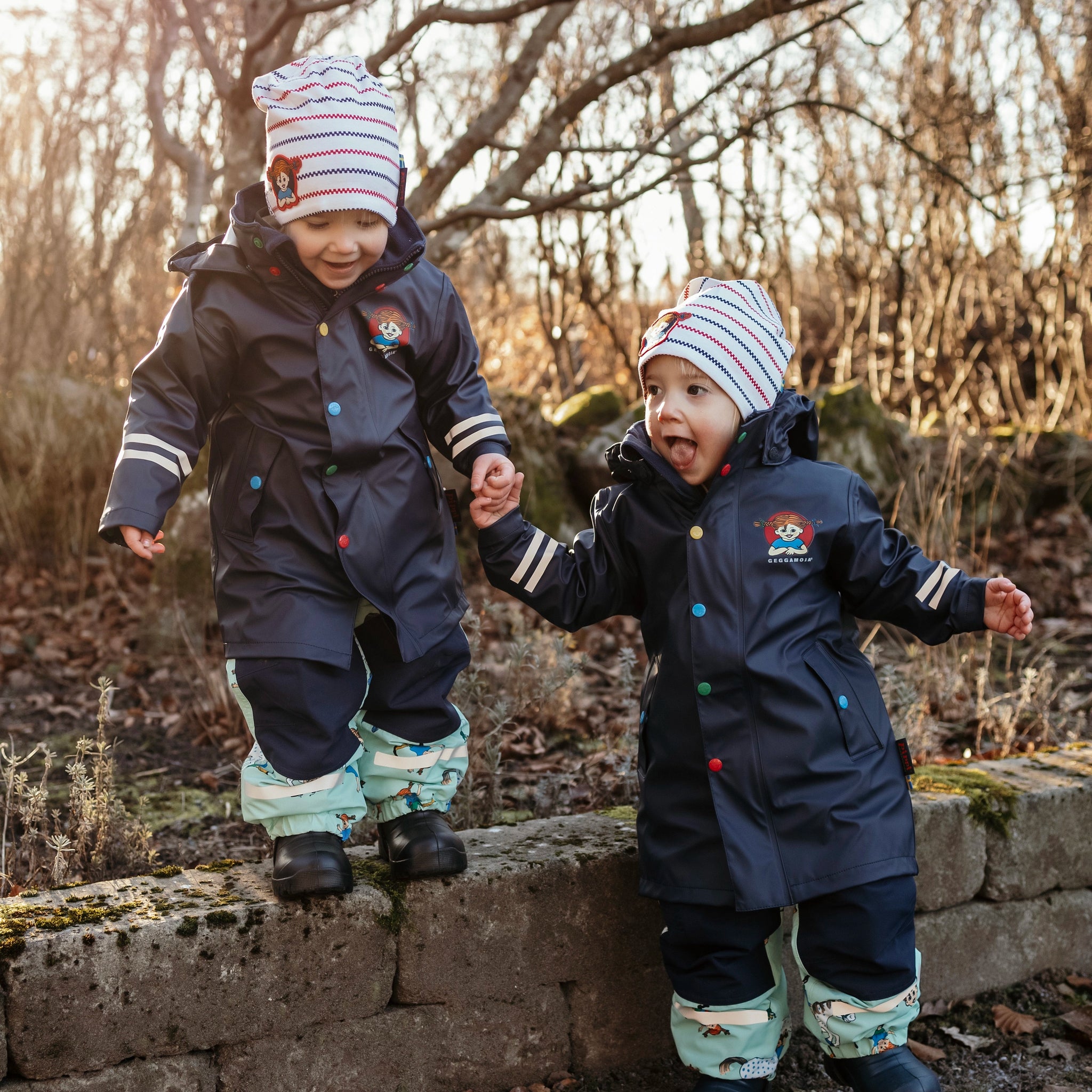 Vad är randigt, mjukt och fullt av bus? Jo, den här härliga trikåmössan med Pippis klassiska ränder! Perfekt för små äventyrare som älskar att tänka fritt, springa snabbt och hitta på upptåg – precis som Pippi själv.