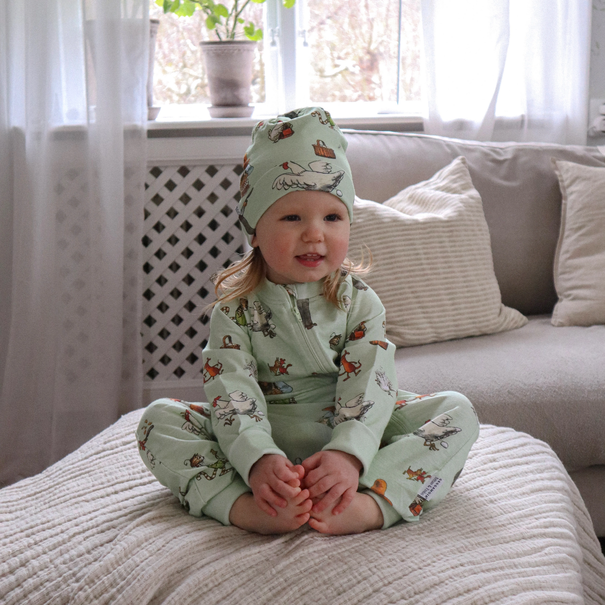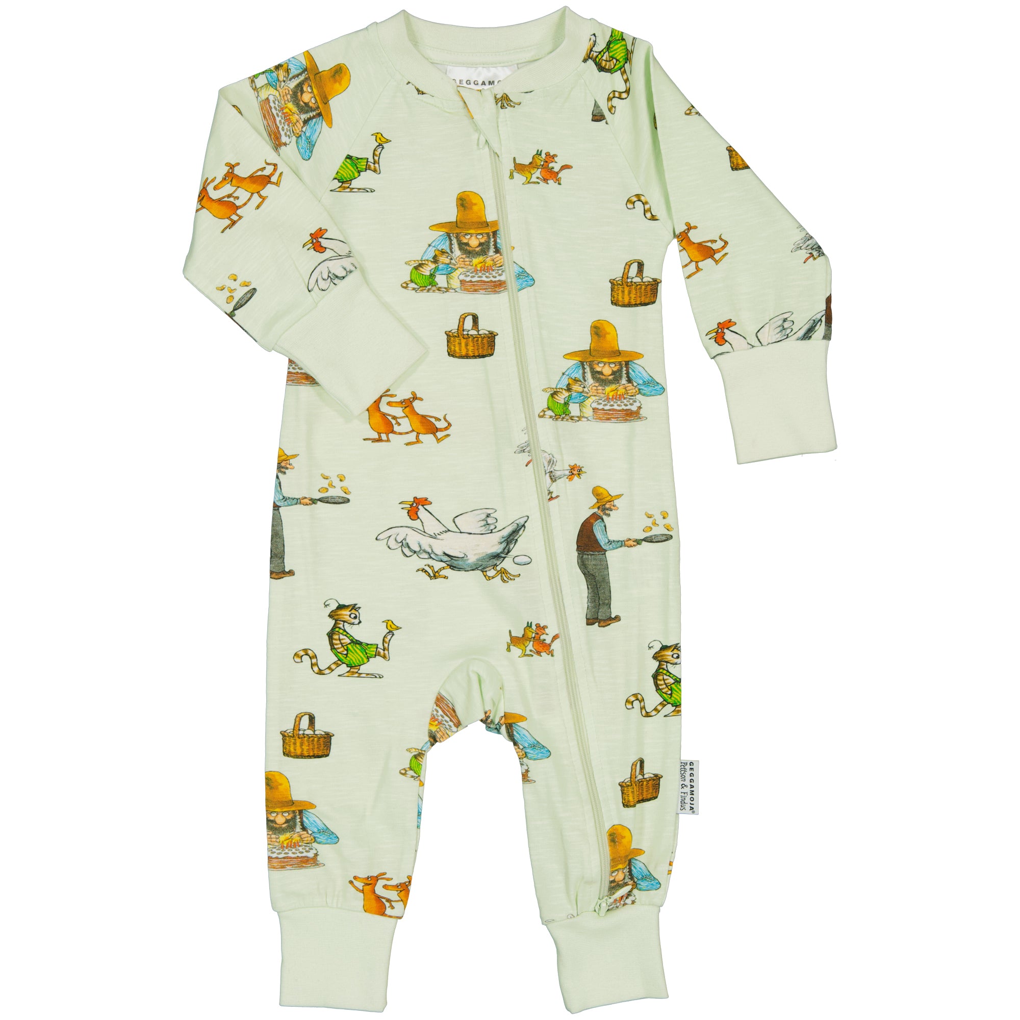Mjuk och skön pyjamas i Ekologisk bomulls-slub med ett härligt motiv med Pettson & Findus. Pyjamasen har blixtlås fram med skydd så blixlåset inte ligger mot huden. Blixtlåset går att öppna både uppifrån och nerifrån, vilket underlättar snabba blöjbyten på natten. Breda muddar ärm och benslut gör så att pyjamsen kan vikas upp om den är lite stor i från början. Härlig hel pyjamas som inte lämnar glipor.