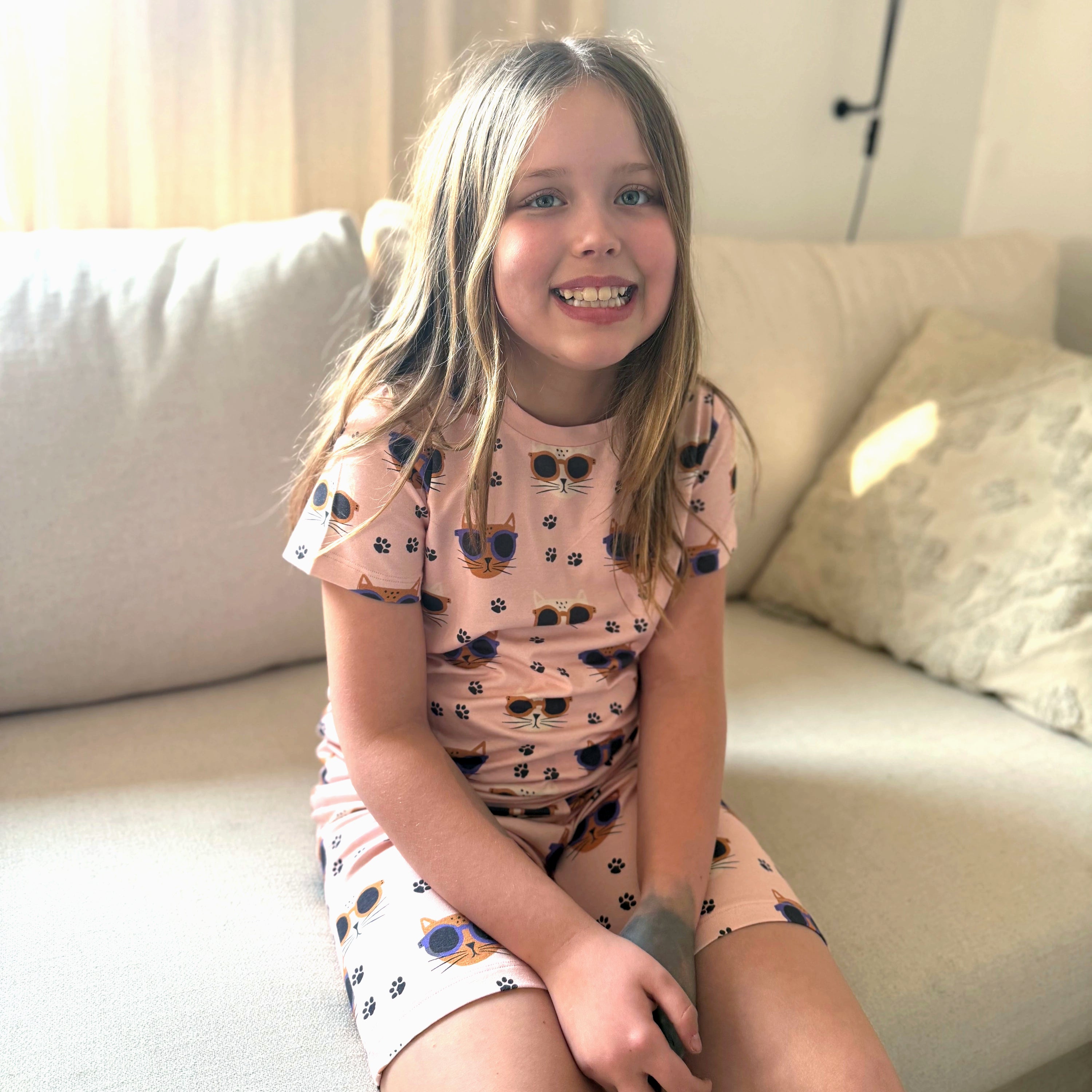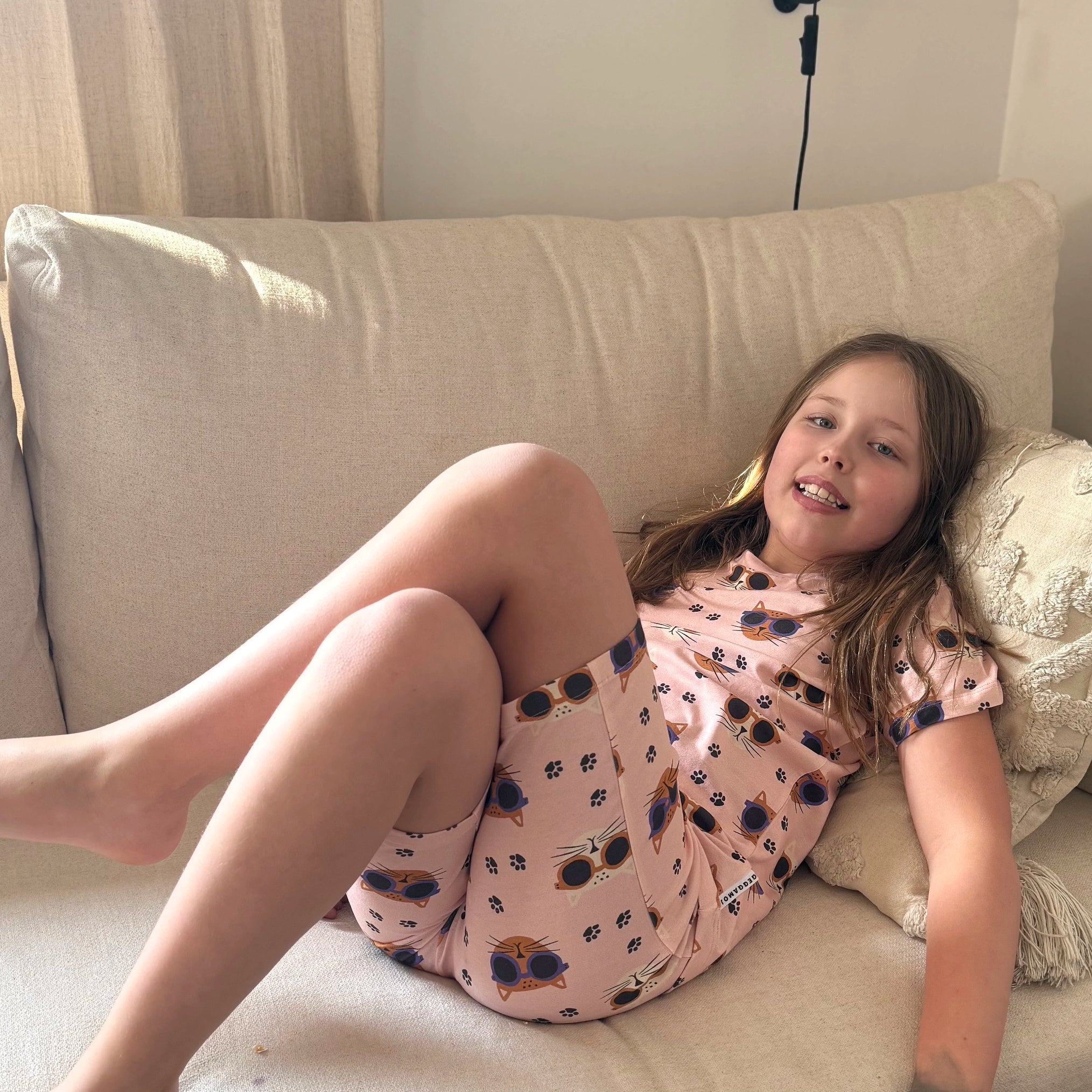 Tvådelad set i mjuk och skön i bambu. Setet består av ett par shorts och t-shirts som passar fint på sommaren men även hela året om barnet är varmt. Bambu är ett miljövänligt materialval, det odlas helt organiskt utan bekämpningsmedel och är 100 % biologiskt nedbrytbart. Bambu är lent och bekvämt mot huden och tillåter huden att andas. Dess termiska egenskaper är detsamma som ull och silke, gör att materialet känns varmt när det är kallt och svalt när det är varmt- ett perfekt material för barnkläder.