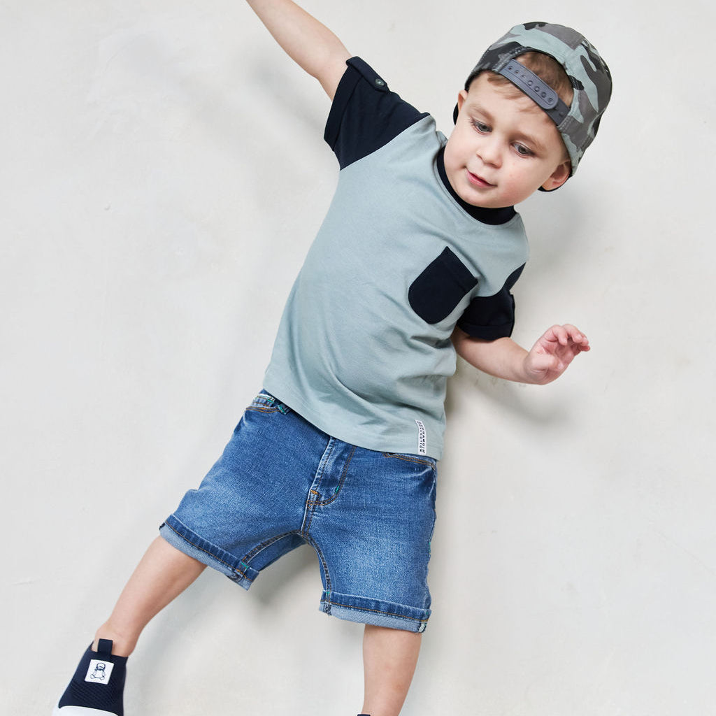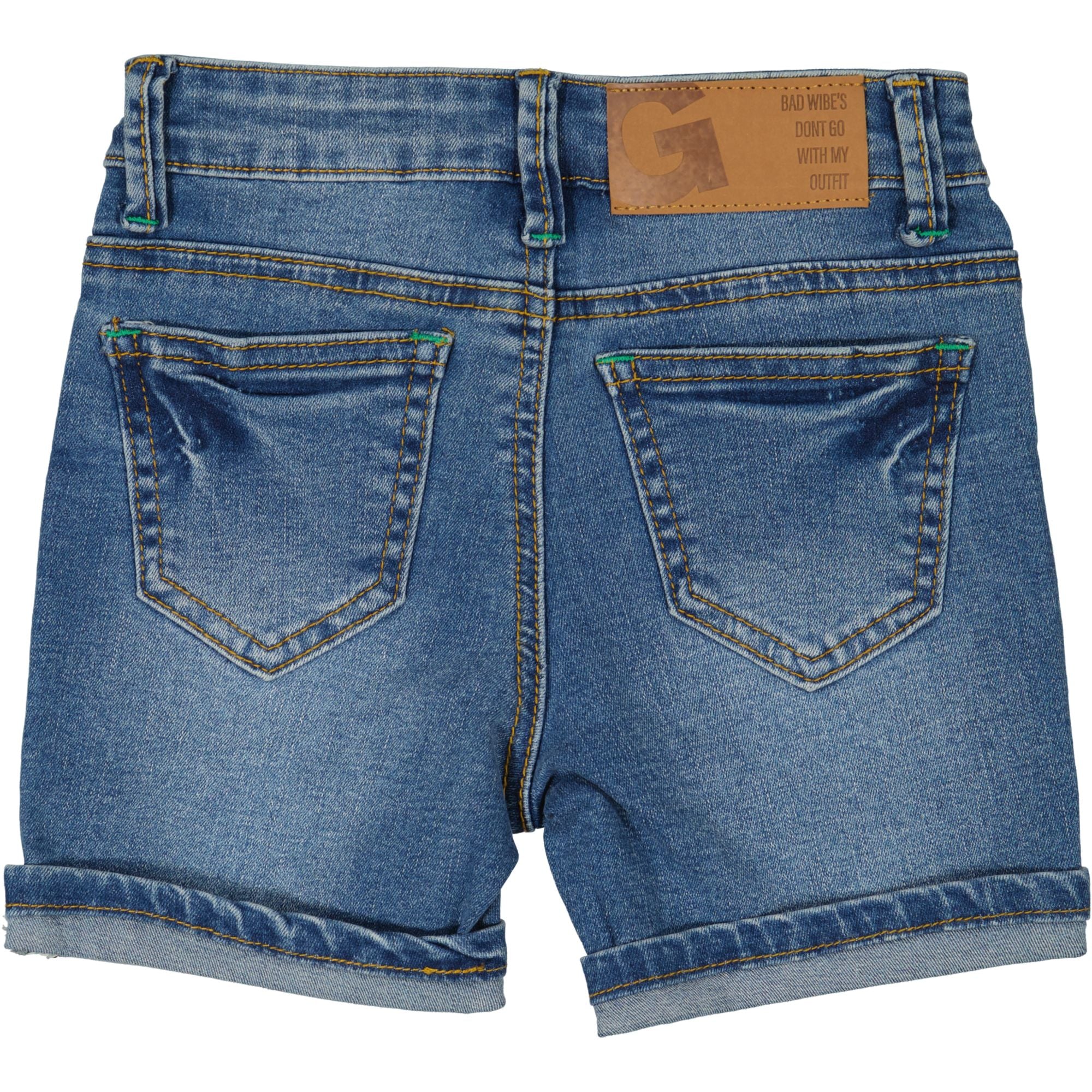 Jeansshorts for sommarens varma dagar. Ett par 5-ficks jeansshorts i mjuk och stretchigt material för ditt barn i en unisex-modell. Klassisk blå, med slitningar. Mjuka och skön och följsam i materialet. Shortsen har en hålelastik så de enkelt kan regleras i midjan.