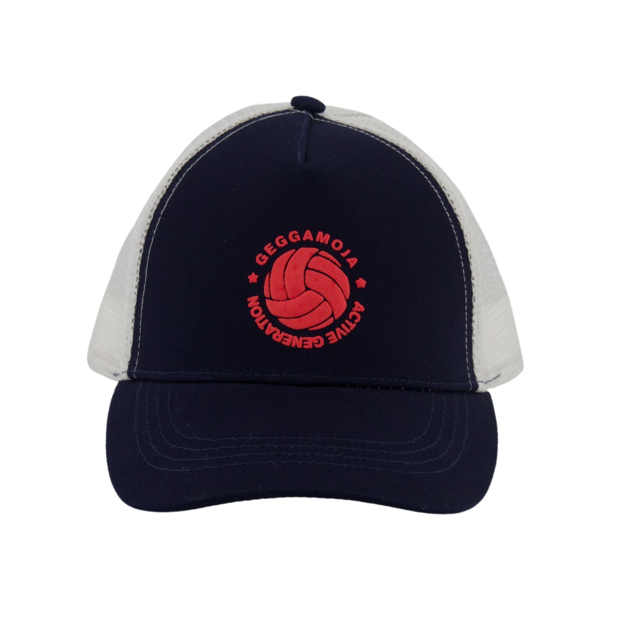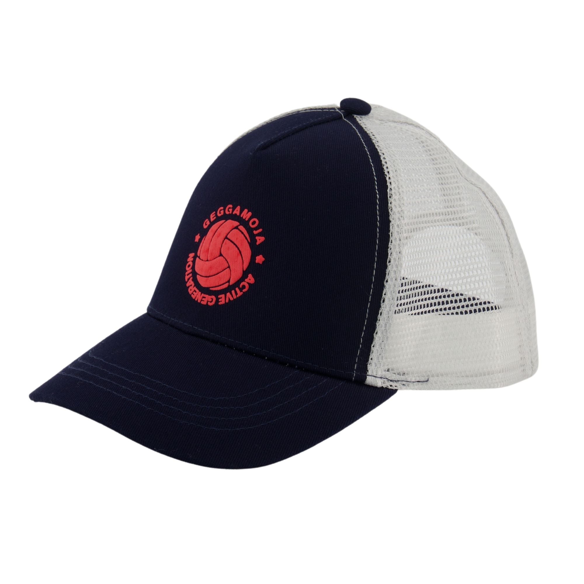 Keps med mesh baktill för varma sommardagar. Kepsen är i marinblå och grå med och har ett reglerbart spänne bak.