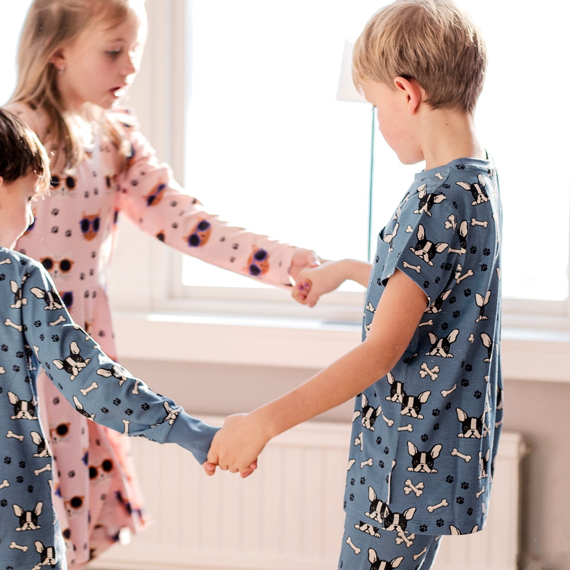 Våra bambuplagg är tillverkade i en mjuk och hållbar mix av bambu, ekologisk bomull och en liten del elastan för extra komfort. Kombinationen gör tyget silkeslent, följsamt och skonsamt mot huden – perfekt även för känslig hud. Produktionen sker i en OEKO-TEX®-certifierad fabrik, vilket garanterar att plaggen är fria från skadliga ämnen och säkra att bära.