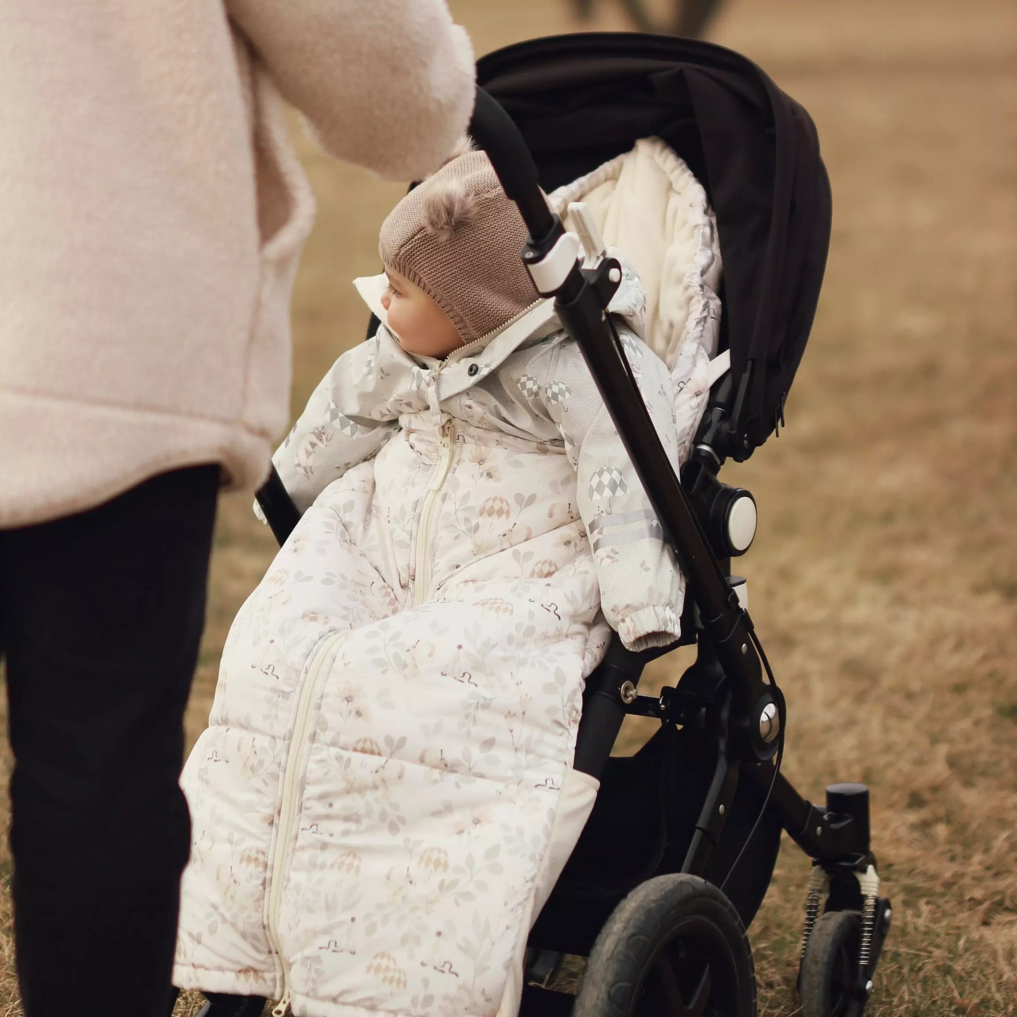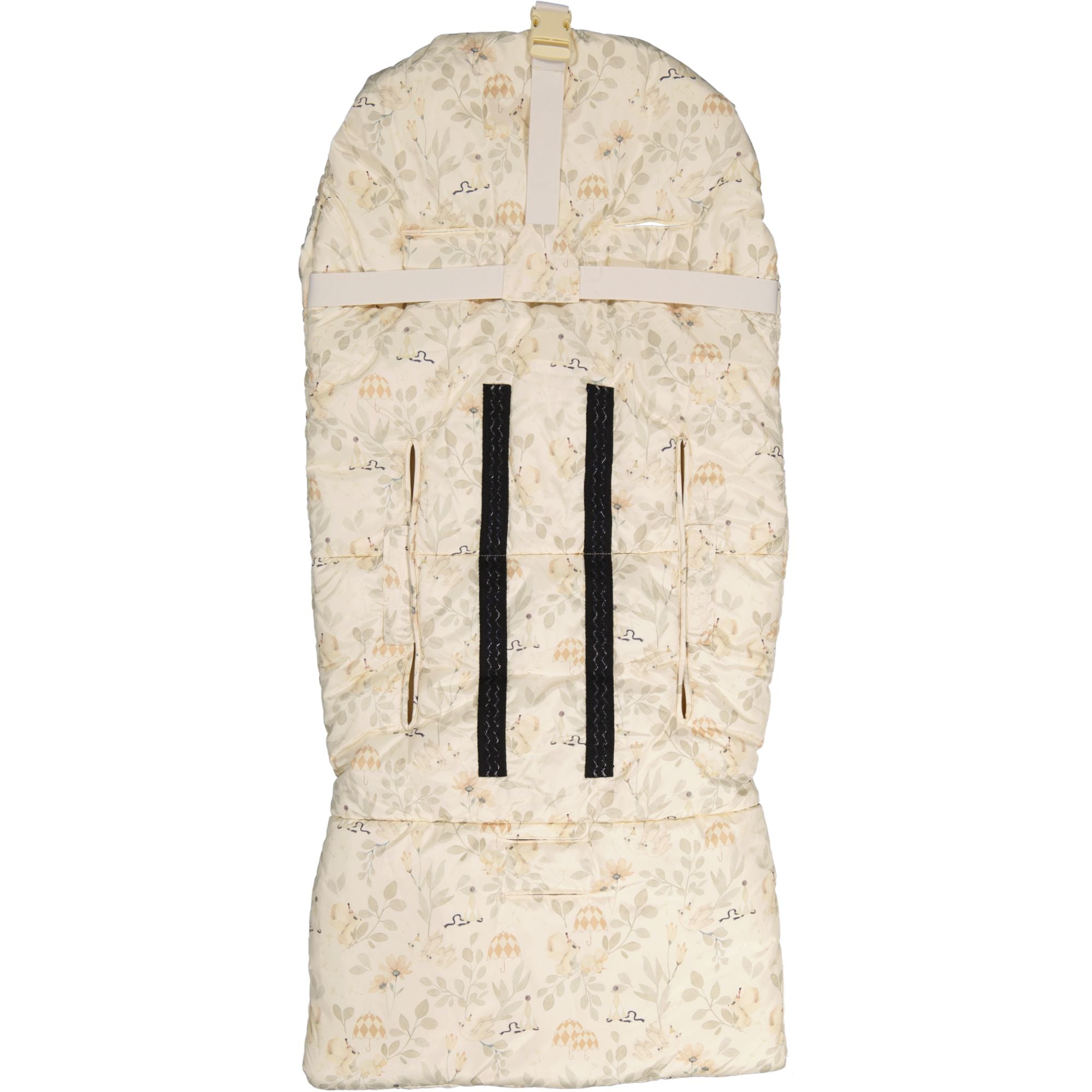 Unik är baksidans band-funktion som hjälper till att reglera åkpåsens placering i barnvagnen.