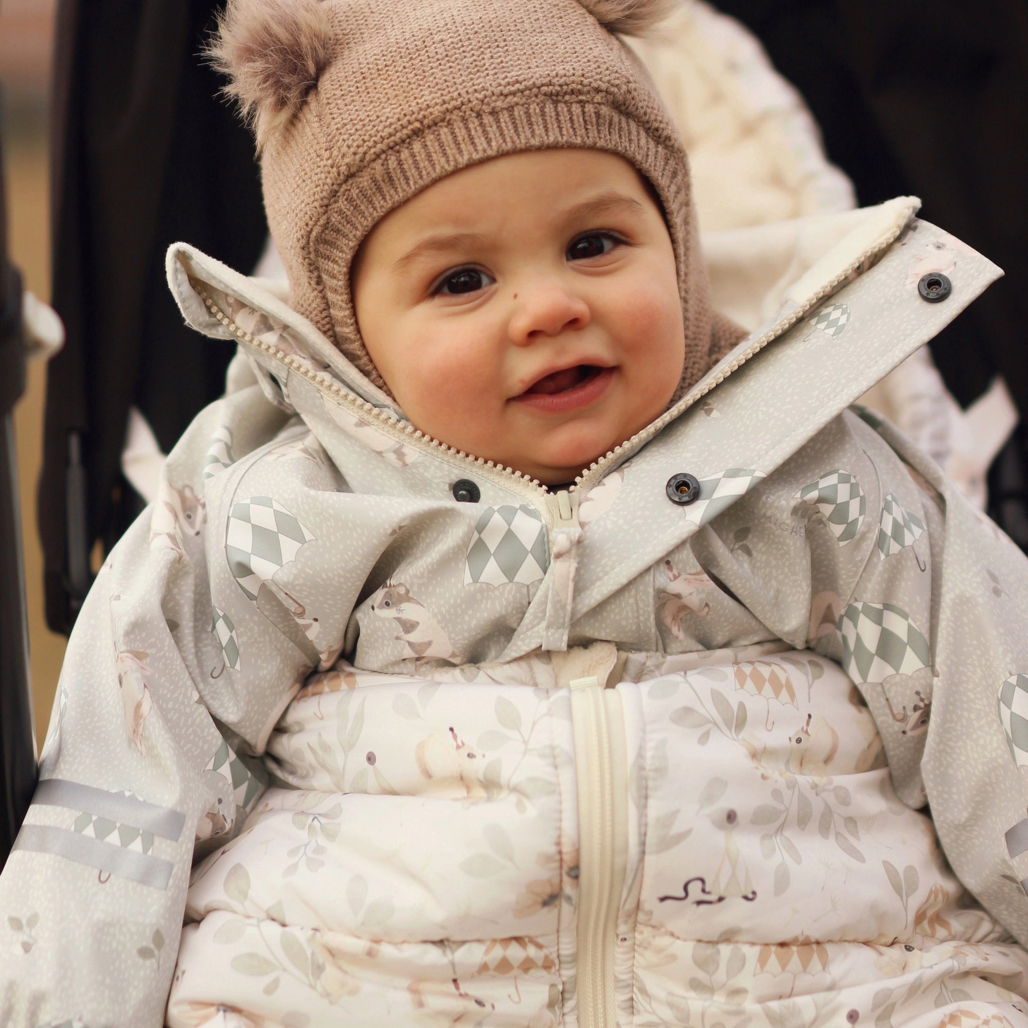 Funktionell åkpåse eller varför inte sovsäck. Finaste motiven från Mrs Mighetto. Tillverkad av ett vattenavstötande yttermaterial som andas och skapar bästa miljön för ditt barn. Hål för barnvagnens bälten, smarta anti-glid-partier på baksidan som förhindrar att åkpåsen glider ner.