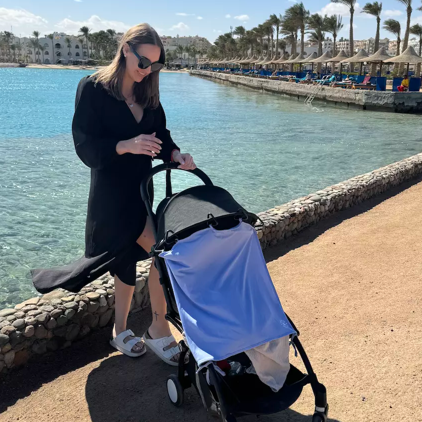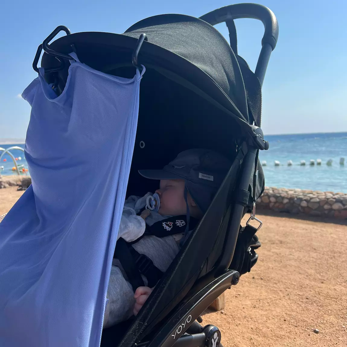 En smart och praktisk UV-gardin i blått. En produkt som underlättar att hålla solen borta. UV gardinen är tillverkad i ett material med UV50+. Materialet blockerar 98% av solens farliga UVA- och UVB-strålar och andas. Gardinen går fint att använda på barnvagn, i bilstolen mm och är universal. UV Gardin fästs smidigt med plastringar som medföljer.