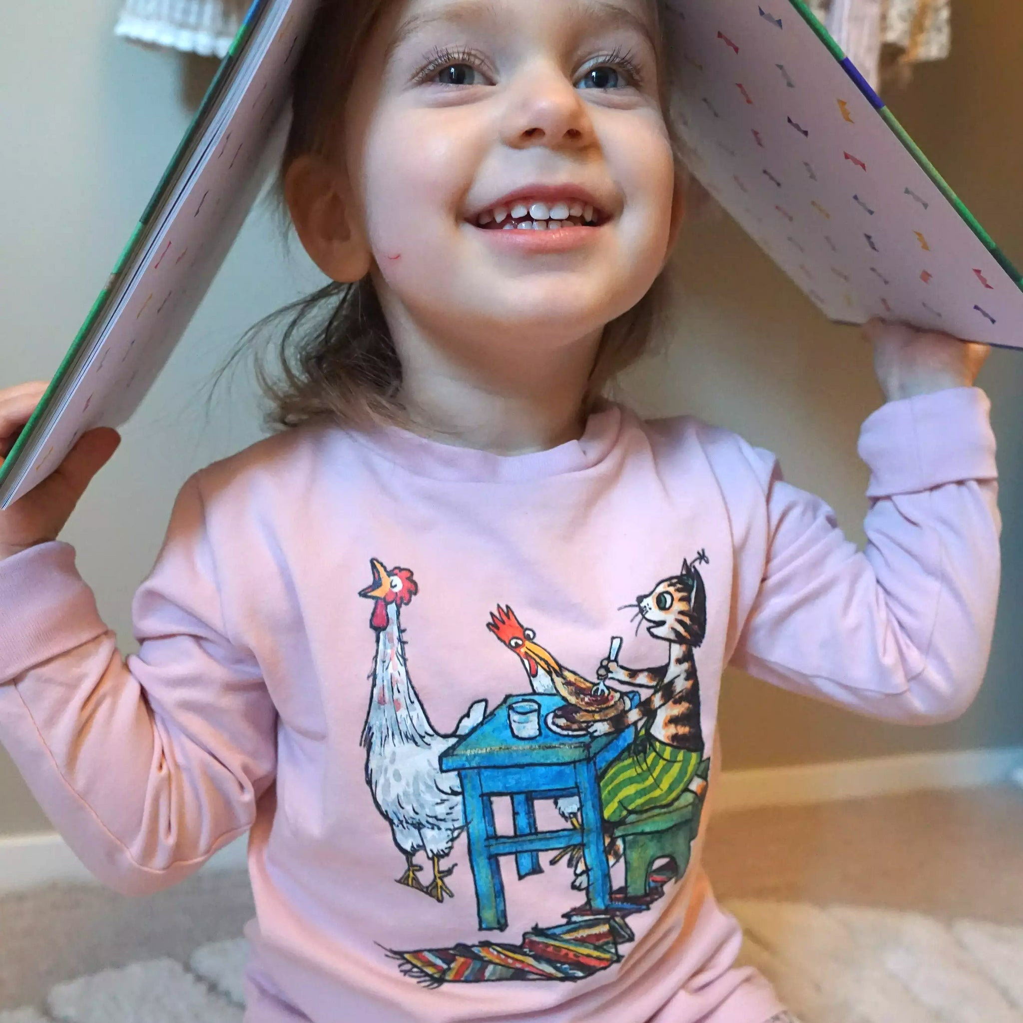Långärmad tröja med Pettson och Findus print. Mjuk och skön Ekologisk bomull. Matcha gärna med leggings.