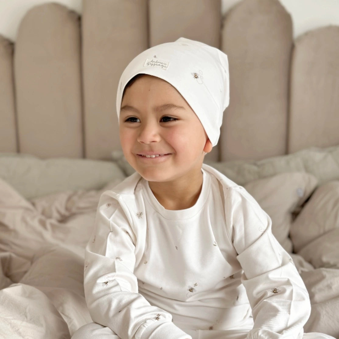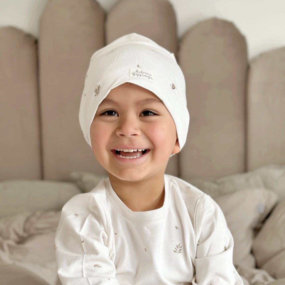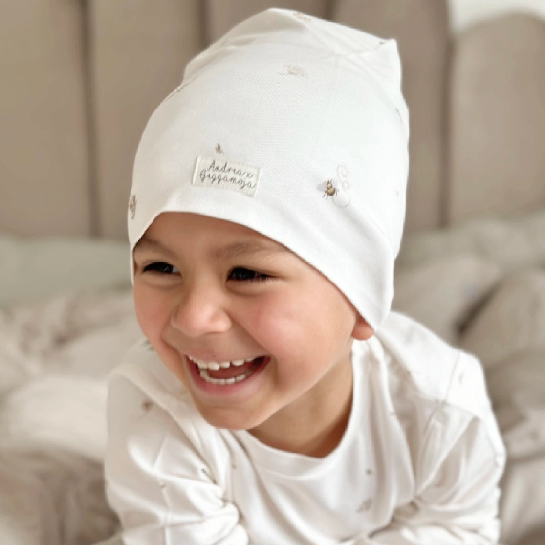 En mössa i mjuk och skön bambu/bomull. Passar vår, sommar och höst. Bambu är ett miljövänligt materialval, det odlas helt organiskt utan bekämpningsmedel och är 100 % biologiskt nedbrytbart. Bambu är lent och bekvämt mot huden och tillåter huden att andas. Dess termiska egenskaper, liksom ull och silke, gör att materialet känns varmt när det är kallt och svalt när det är varmt- ett perfekt material för barnkläder.