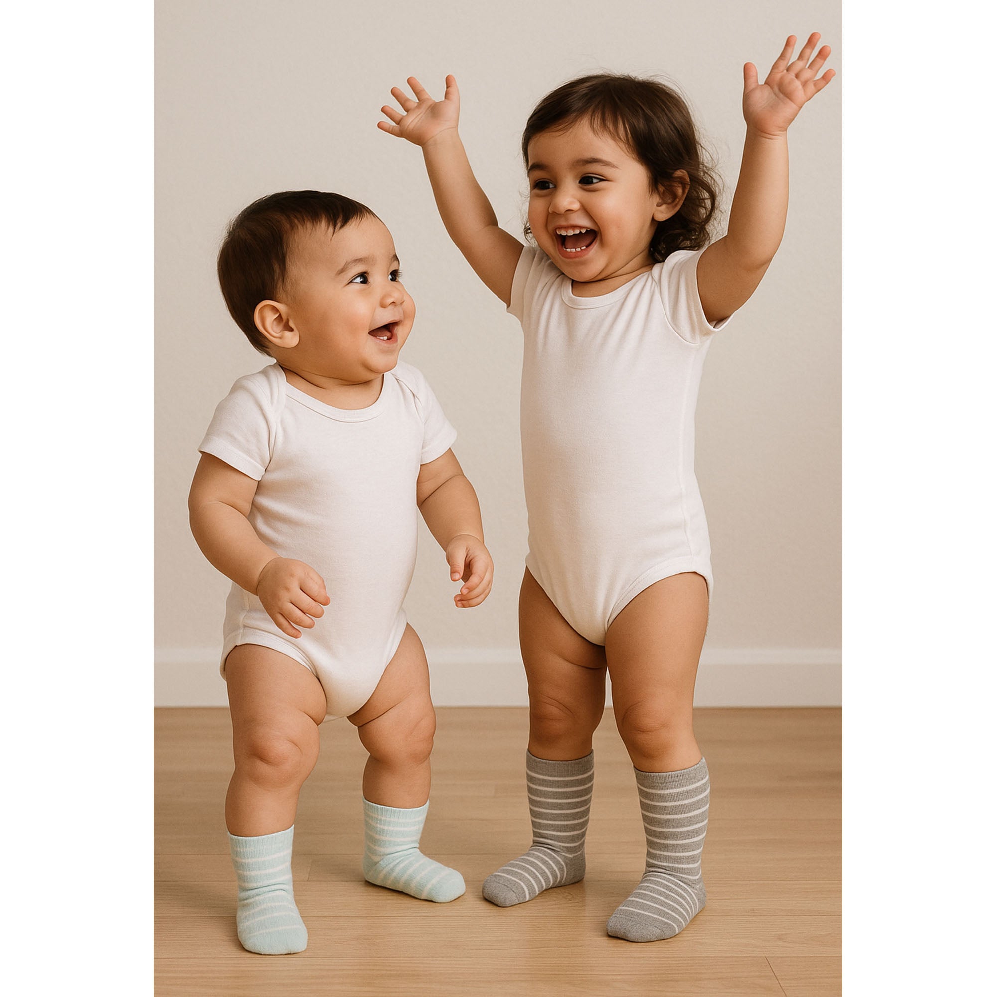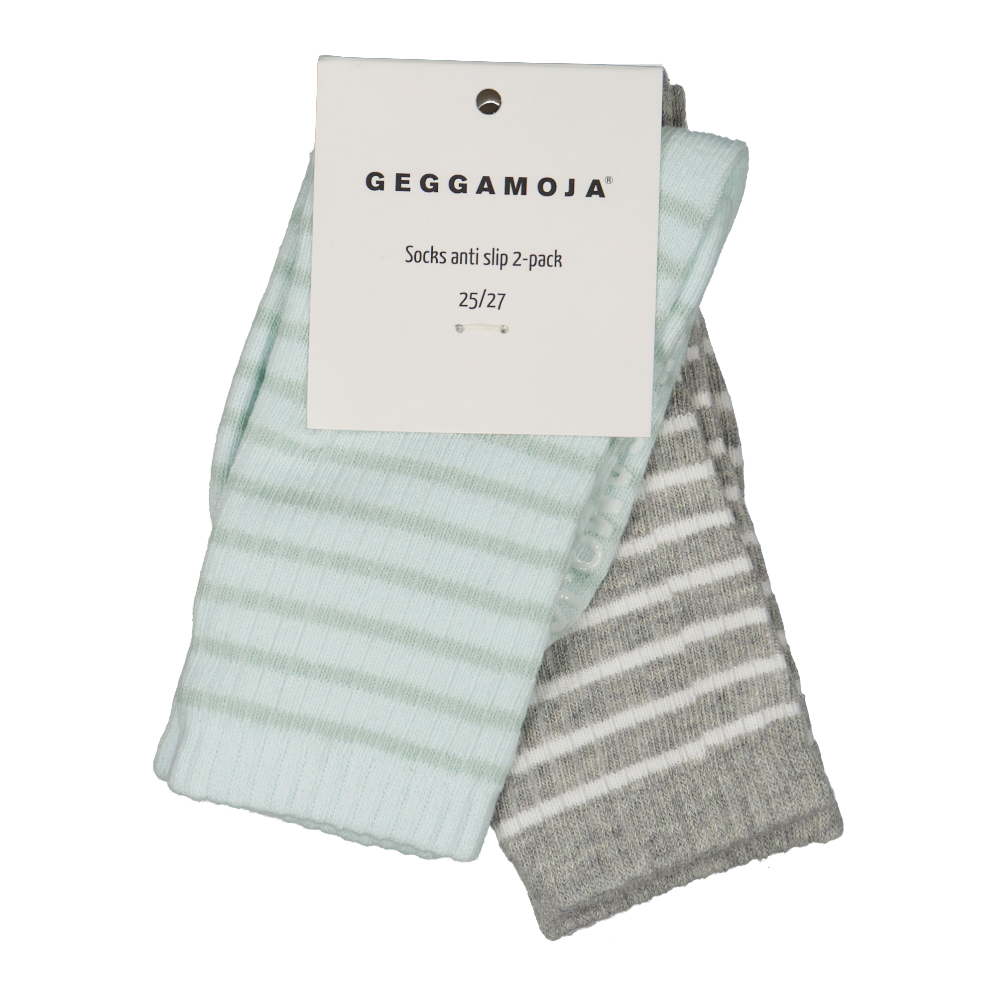 2-pack halkstrumpor. Mjuk och följsamt material som enligt kunders erfarenhet ger strumporna - Världens bästa passform! Dom håller sig på plats. Halkskyddet hjälper våra små äventyrare att hålla stegen lite stadigare.