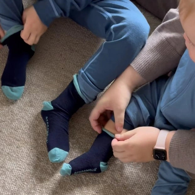 Tunn och smidig ullstrumpa. Varmt och skönt för små och stora fötter. Ett måste i skorna kalla höst och vinterdagar. Ullstrumpan skall vara närmast huden. Ullen transporterar bort svetten så att lilla foten håller sig varm.