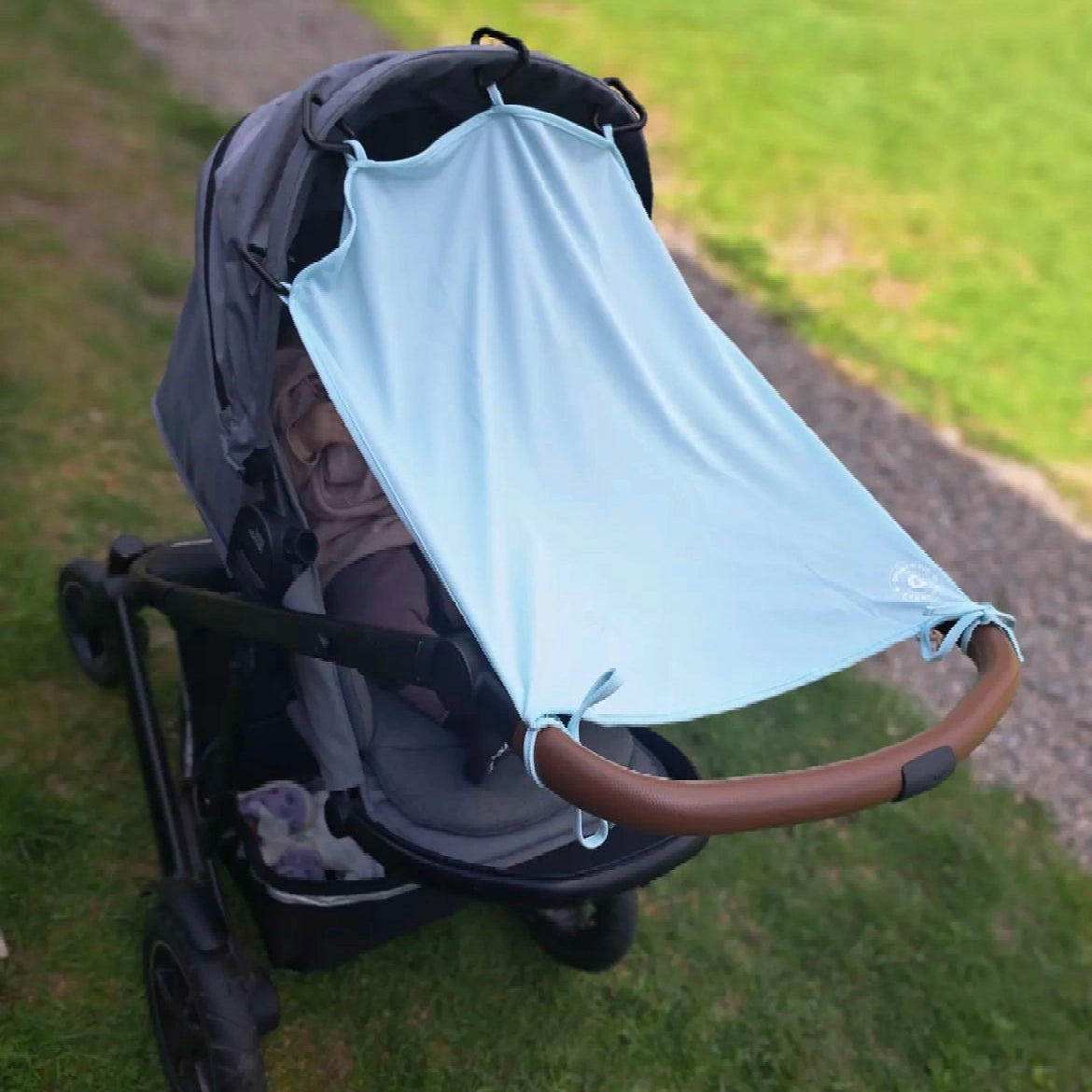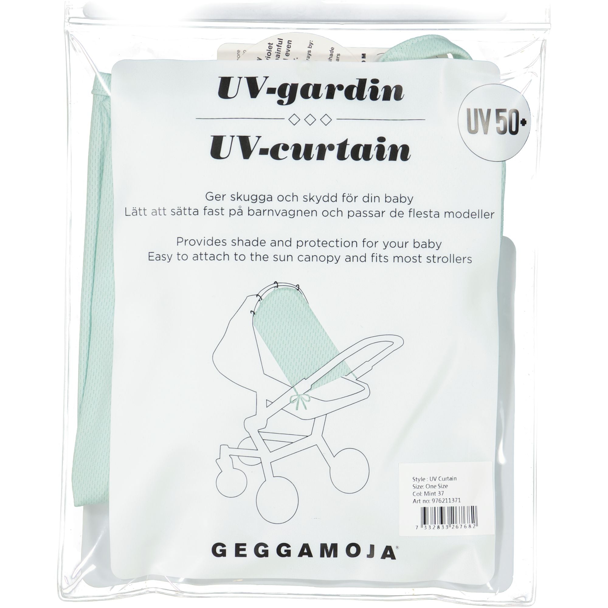 En smart och praktisk UV-gardin i färgen mint. Perfekt som ett extra solskydd över barnvagnen för att hålla solen borta. UV gardinen är tillverkad i ett material med UV50+. Materialet blockerar 98% av solens farliga UVA- och UVB-strålar och andas. Gardinen går fint att använda som UV skydd/ UV gardin på barnvagn, i bilstolen mm och är universal. UV Gardin fästs smidigt med plastringar som medföljer.