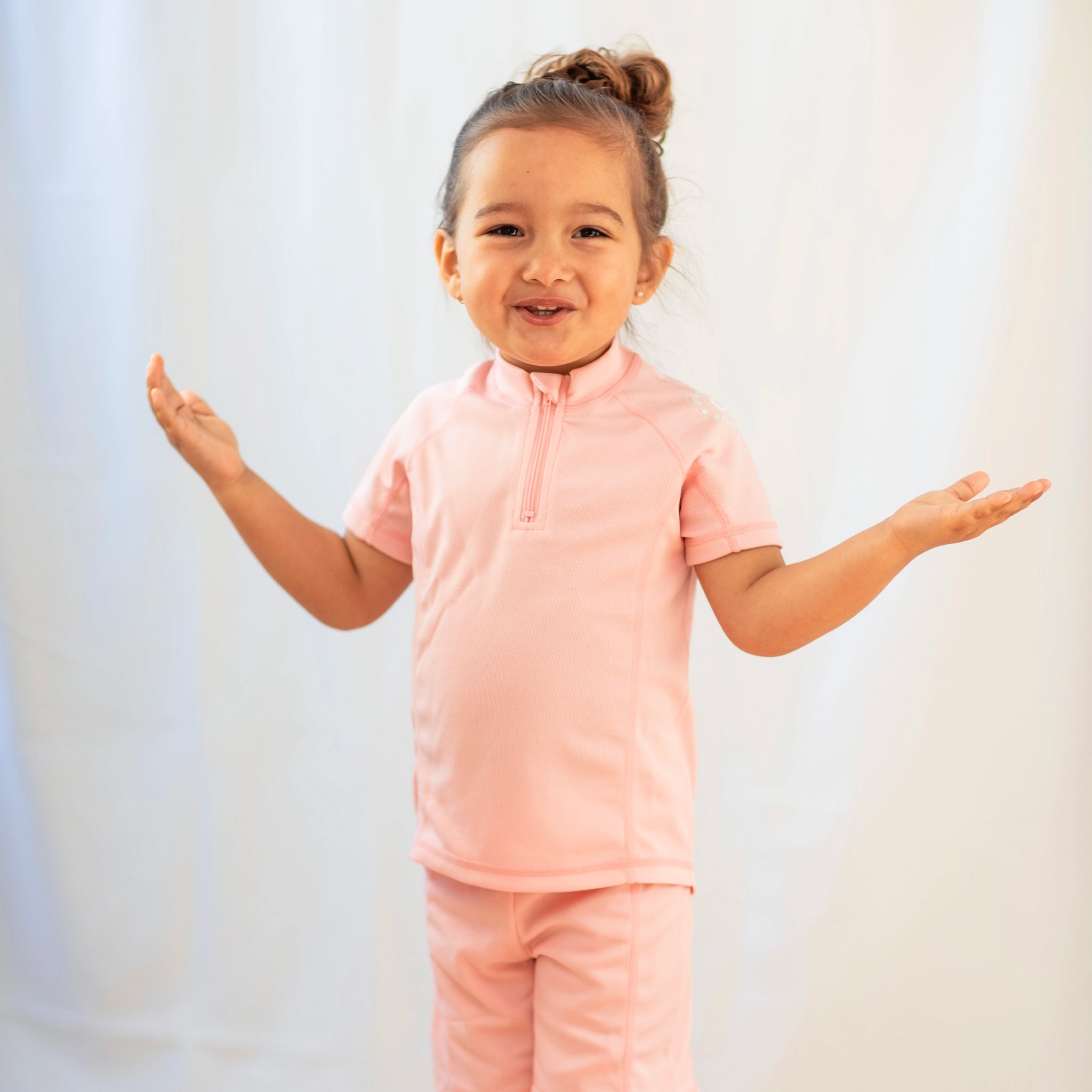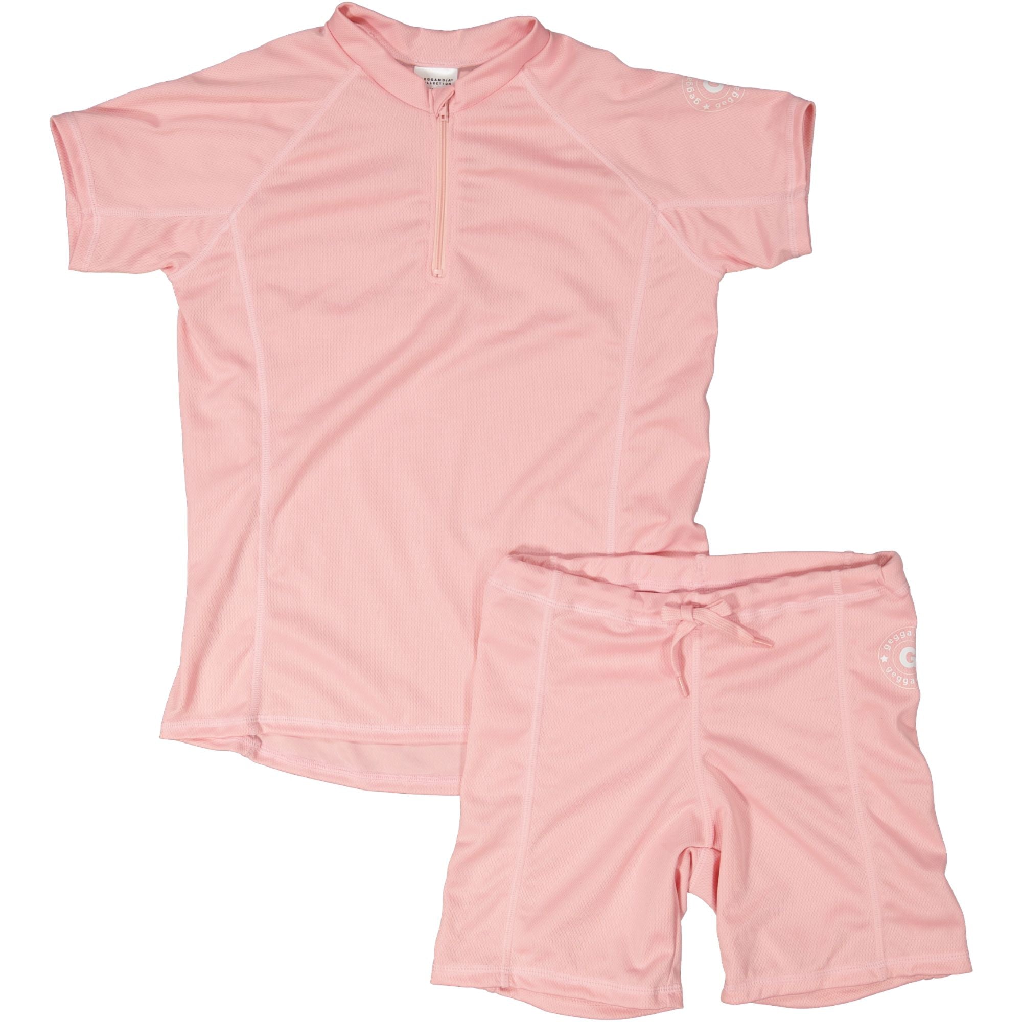 Rosa UV bad-set med kortärmad tröja och shorts. Det är tillverkad i ett snabbtorkande material, med UV-50+ som blockerar 98% av solens farliga UVA- och UVB-strålar. En storfavorit hos barnfamiljer. Med ett UV-set skyddar du ditt barn från solens starka strålar. Tröjan har en dragkedja framtill för enkel på- och avklädnad.