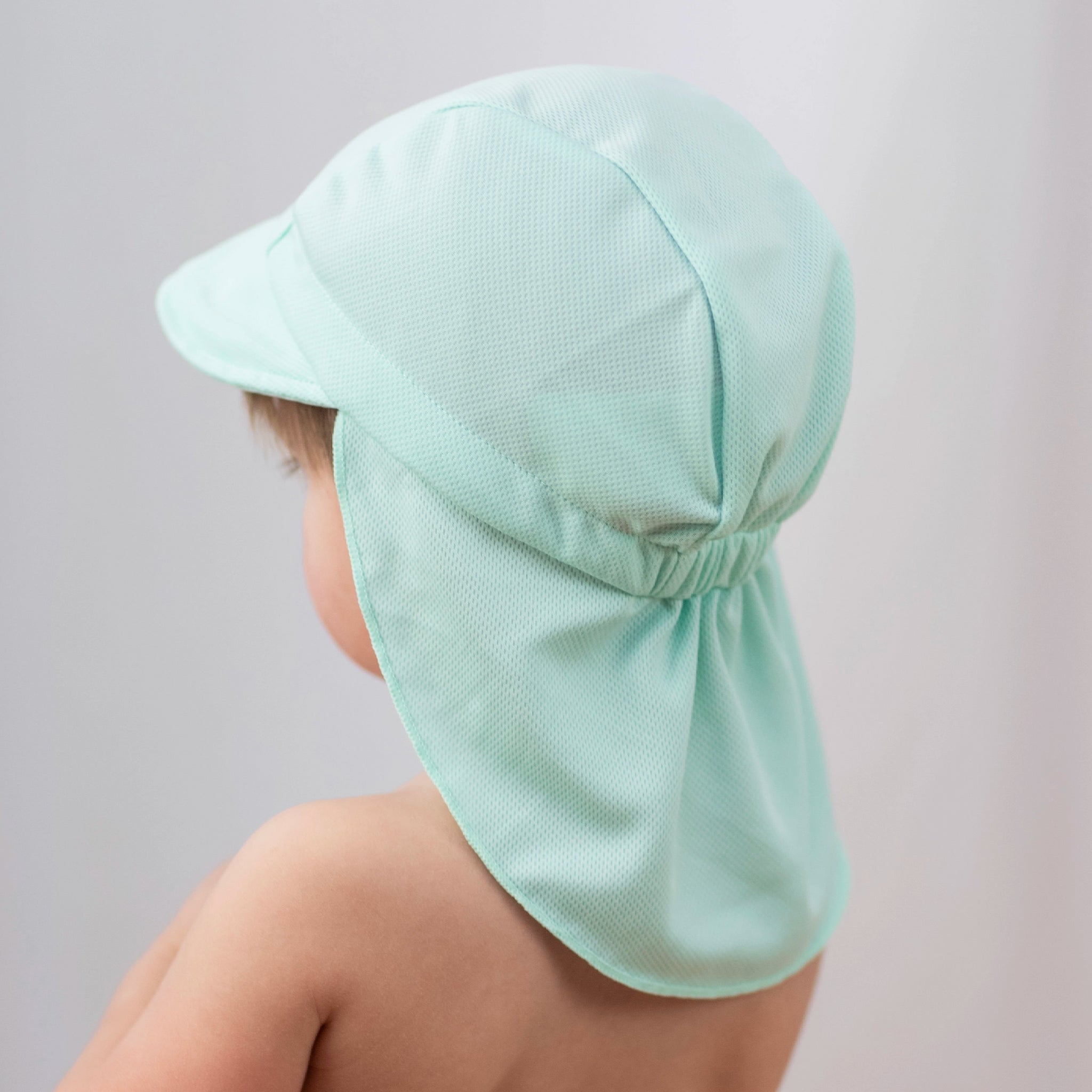 Solhatt för barn med solskyddsfaktor i tyget- UV50+ blockerar 98 % av solens skadliga UVA- och UVB-strålar. Tillverkad av ett vatten- och smutsavvisande material i tyg som andas och håller barnet svalt.