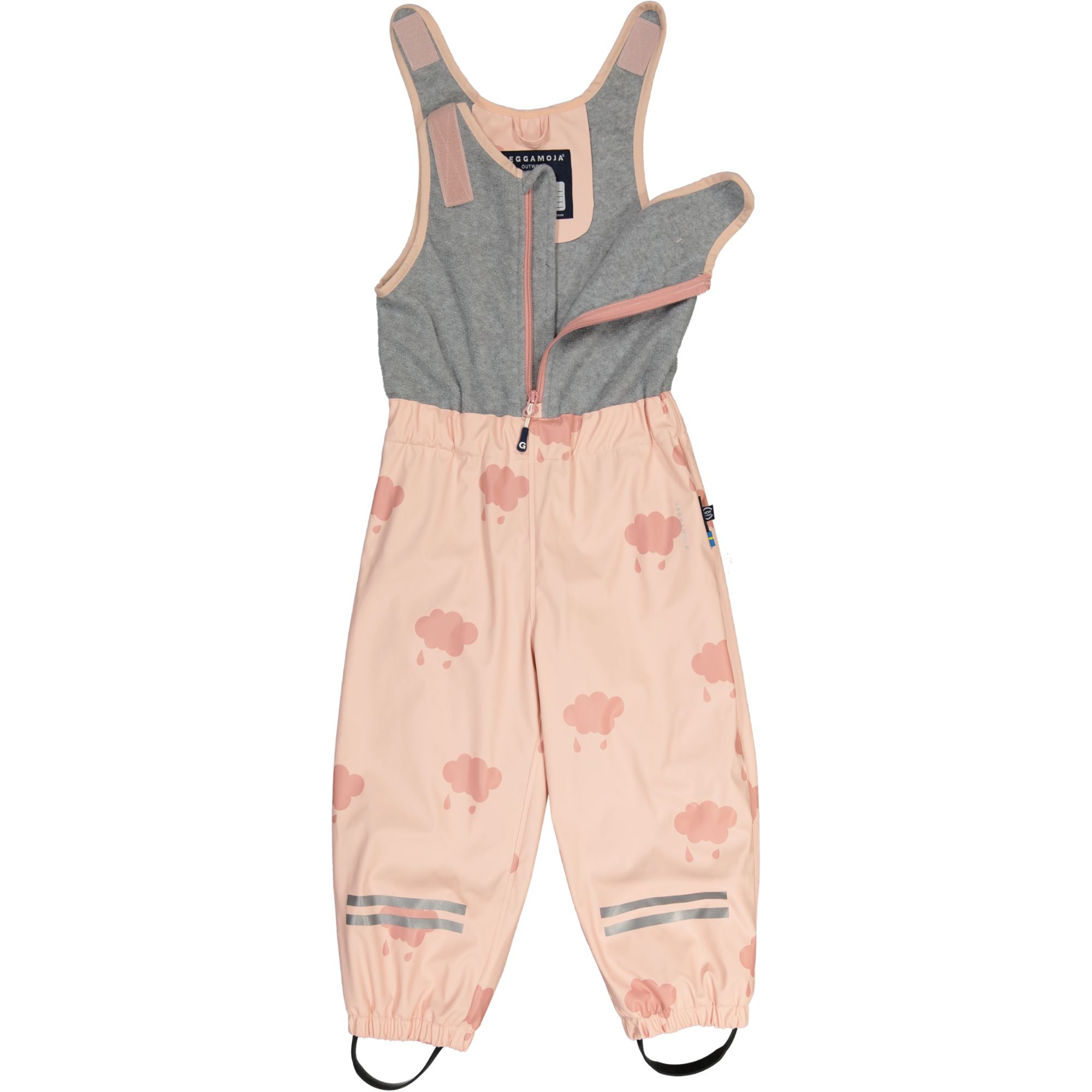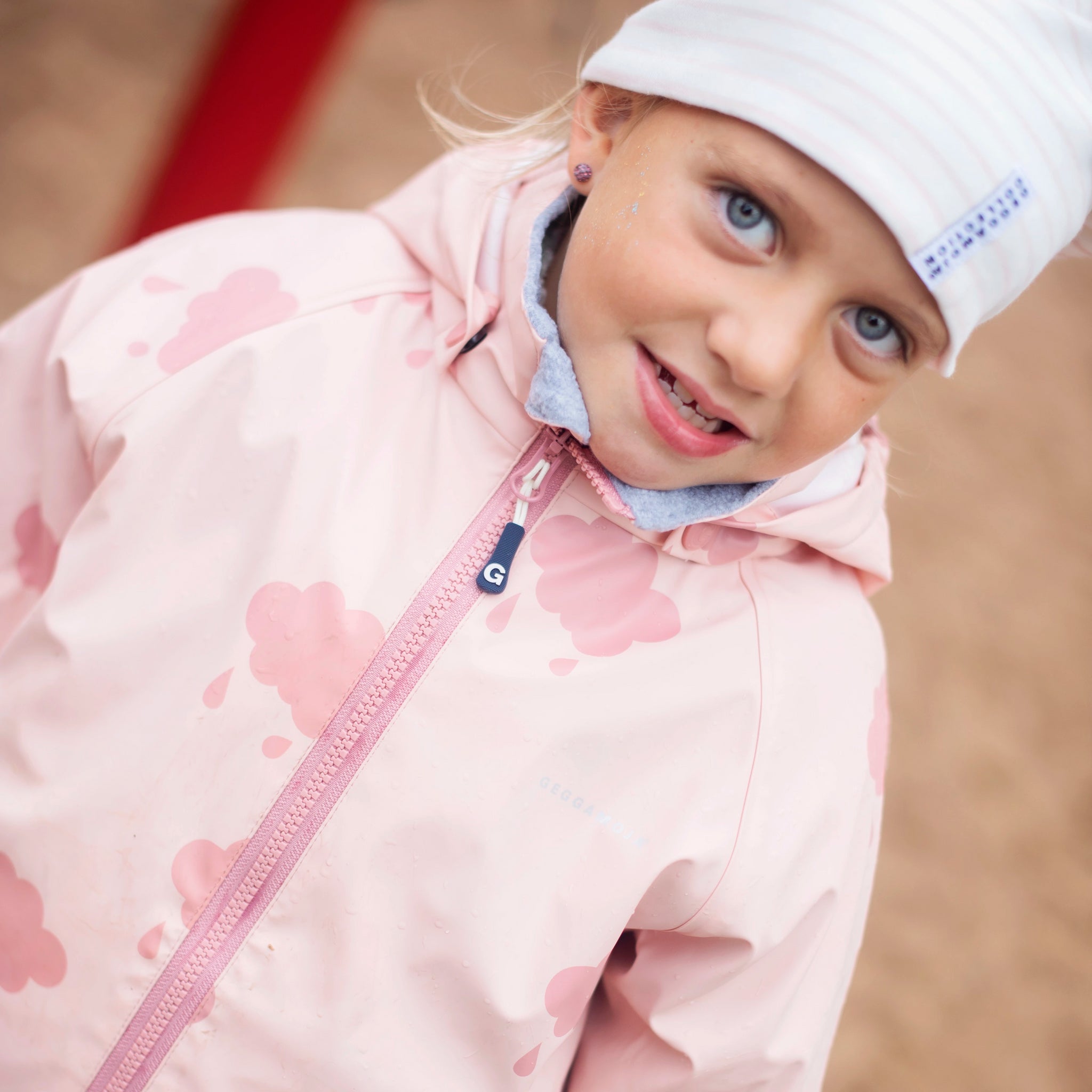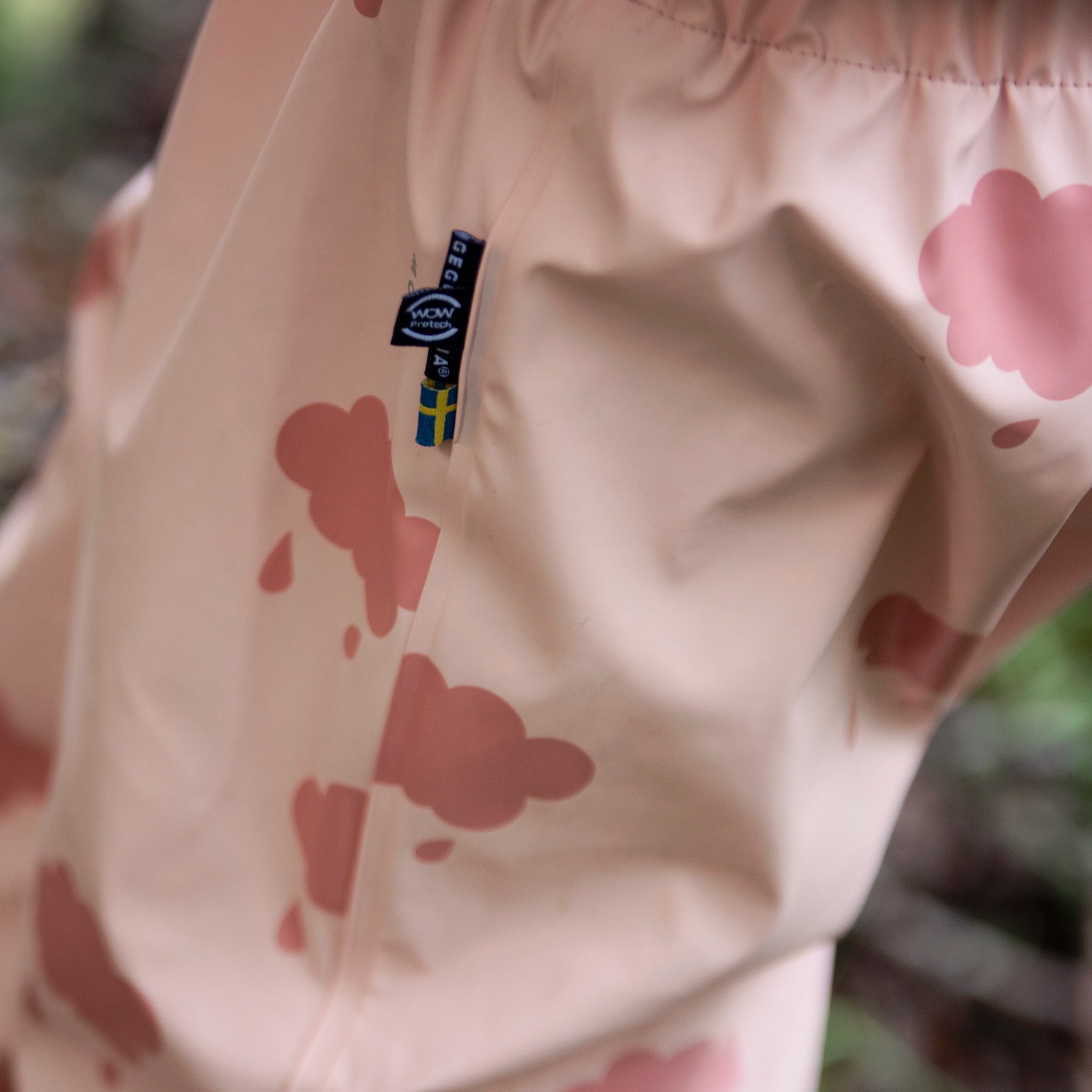 Regn och rusk? Inga problem med detta funktionella fleecefodrade regnställ som håller barnet torrt och bekvämt, vare sig det är regnlek, skogsutflykt eller en riktigt blöt promenad till förskolan. Reflexdetaljer på både jacka och byxa ser till att barnet syns även när ljuset är svagt. Den högre byxmodellen är bekväm och ger skydd mot glipor. Reglerbara hängslen och en justerbar midja med knappar gör att passformen enkelt kan anpassas.