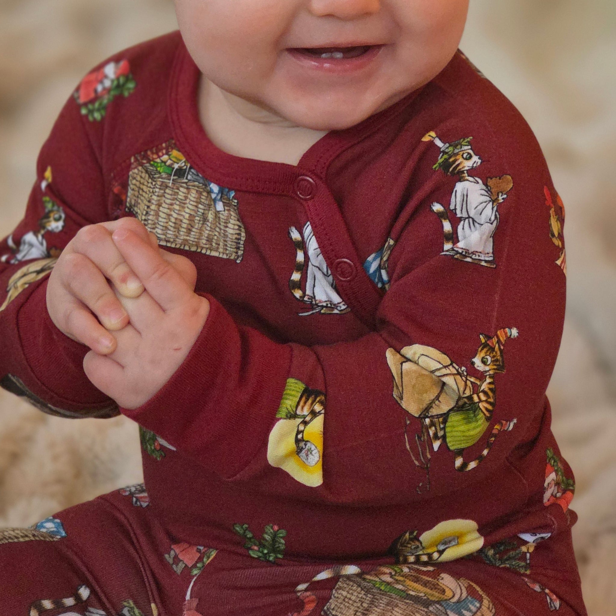 Langärmliger, weicher und bequemer Body aus Bambus. Starke Druckknöpfe im Schritt und an der Ärmelnaht. Breite Bündchen an den Ärmelenden.