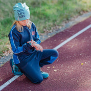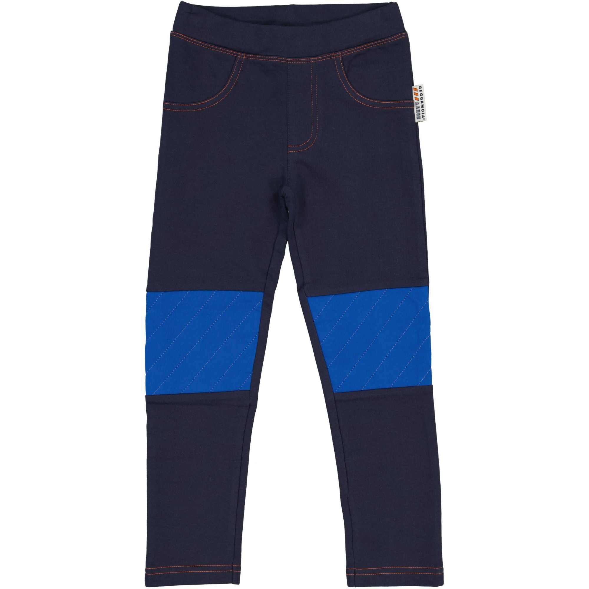 College-Treggings mit Knieschutz in Blau. Weich und bequem zum Hüpfen und Herumlaufen. Die Hose hat falsche Taschen an den vorderen Seiten und echte Taschen hinten mit Stickerei.