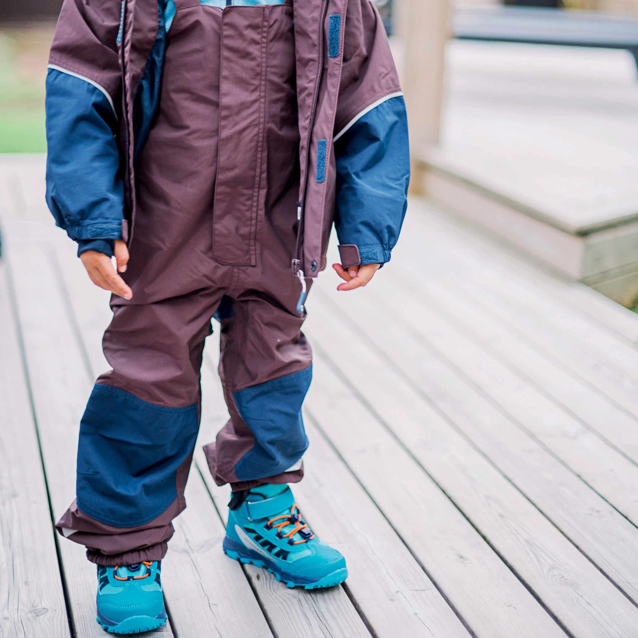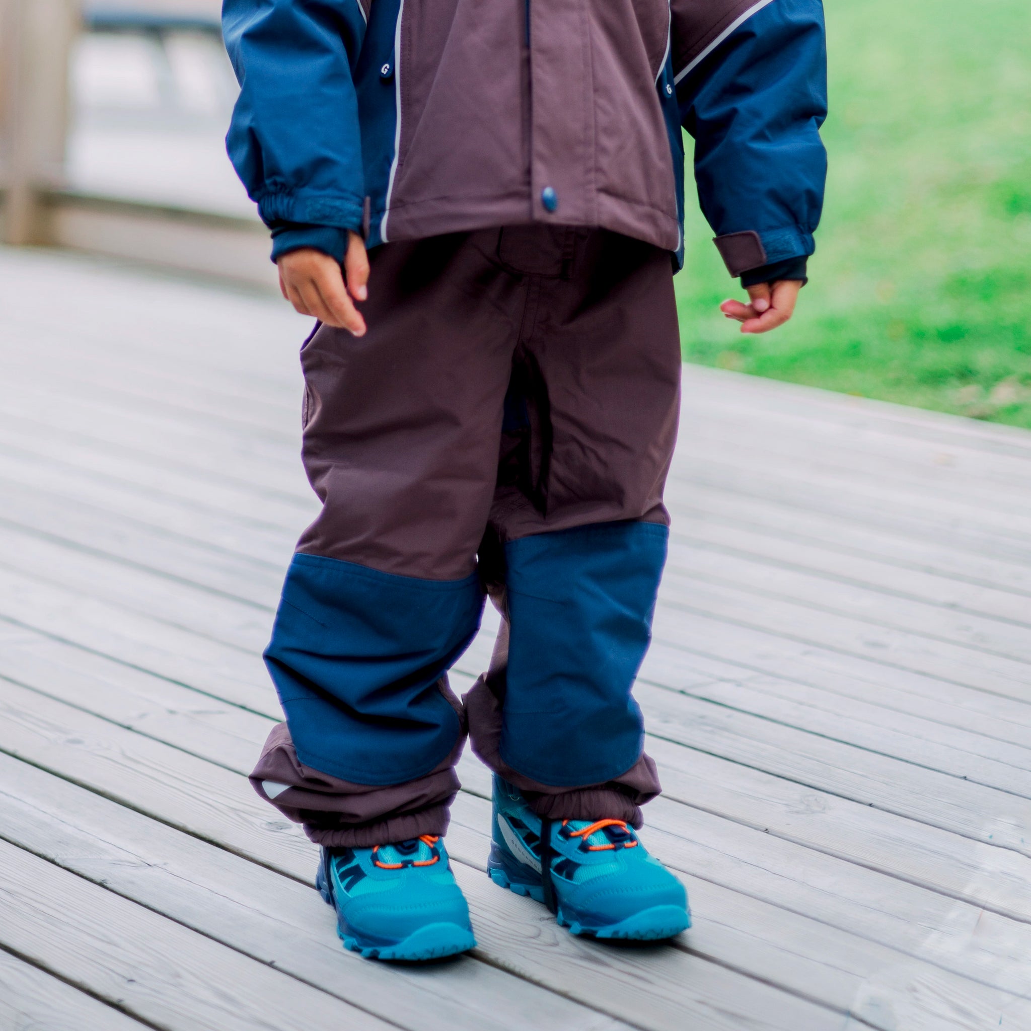 Bereit für jedes Wetter! Diese strapazierfähigen und hoch geschnittenen Shell-Hosen bieten dank getapten Nähten und robustem, funktionalem Material zuverlässigen Wind- und Wasserschutz. Verstärkungen an Knien und Gesäß machen sie besonders langlebig für Spiel und Abenteuer. Verstellbare Hosenträger sorgen für eine bequeme Passform, und der praktische Frontreißverschluss erleichtert das An- und Ausziehen. Reflektierende Details sorgen dafür, dass das Kind im Dunkeln sichtbar ist, während elastische Beinabschlüsse und Schuhschlaufen die Hose an Ort und Stelle halten – egal wie wild getobt wird! Perfekt für aktive kleine Entdecker bei jedem Wetter.