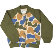 Robuste Baseballjacke im Terazzo-Motiv, mit Druckknöpfen und Seitentaschen. Die Jacke hat ein weiches, gebürstetes Innenfutter.