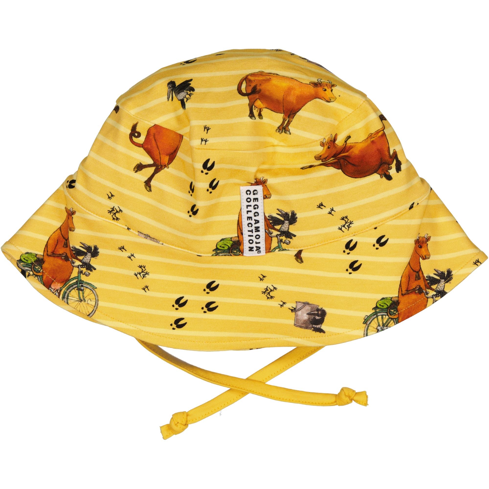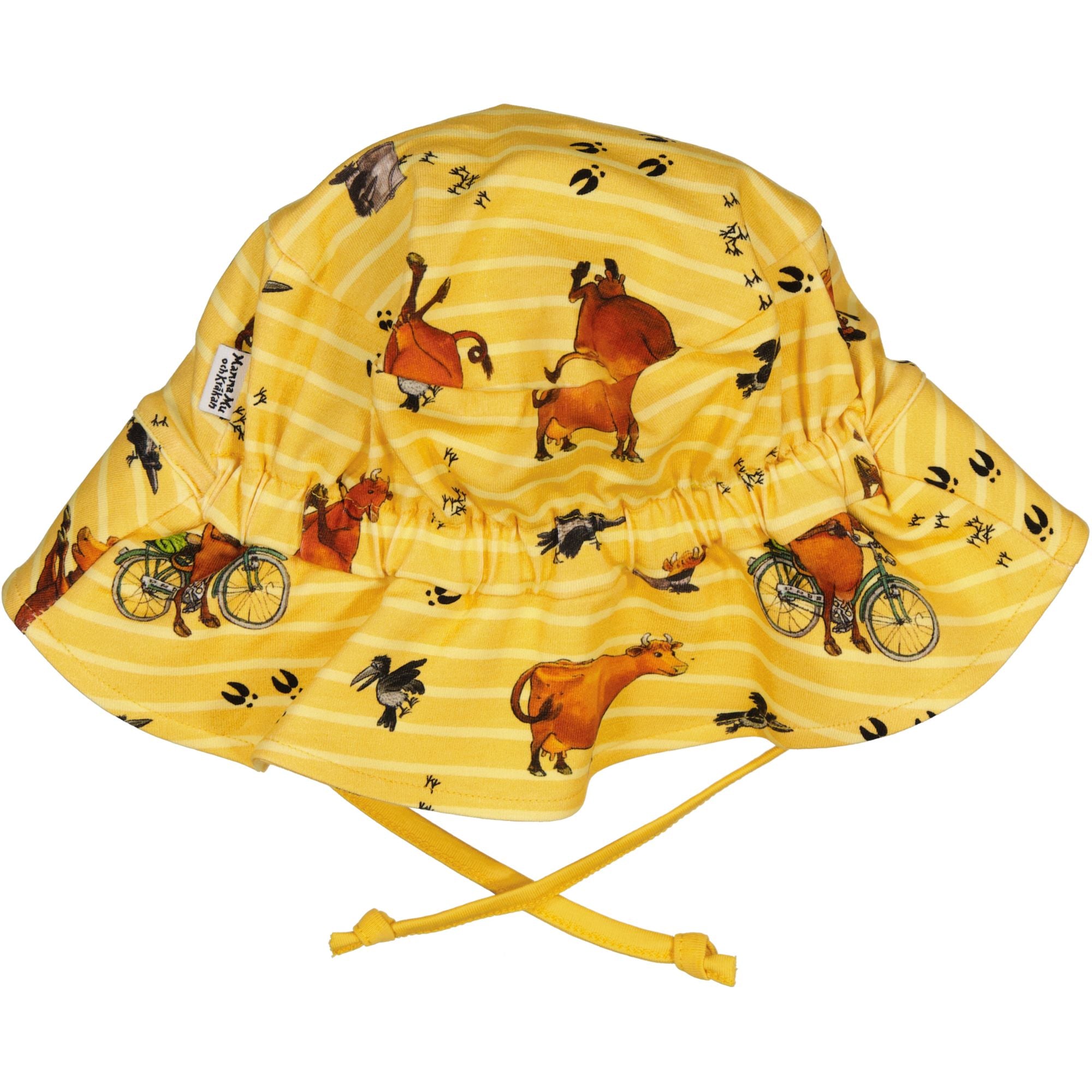 Ein Sonnenhut aus weicher, kühler Baumwolle mit Mamma Mu-Motiv. Der Sonnenhut hat Bänder zum Binden unter dem Kinn und einen Gummizug hinten für die beste Passform.
