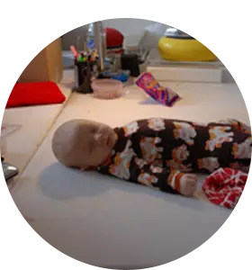 Zwei kleine Geggamojababys werden auf dem Planeten Erde willkommen geheißen. Das Büro und Atelier in Enebyberg werden zum zweiten Zuhause für die Cousins Vilgot und Valter, während Edvin den Kindergarten besucht. Verschüttete Milch über der Tastatur, Mehrwertsteuererklärungen mit Klecksen und Gekritzel, Verkaufsgespräche werden mit Schlafenszeiten abgestimmt. Die Ideen klopfen jede Woche an die Tür und neue lustige Kleidung entsteht. Jetzt werden beliebte Produkte wie die „Fotfilten“ Fleece-Mützen, Helmmützen, Halskrausen, Sabbertücher usw. kreiert.