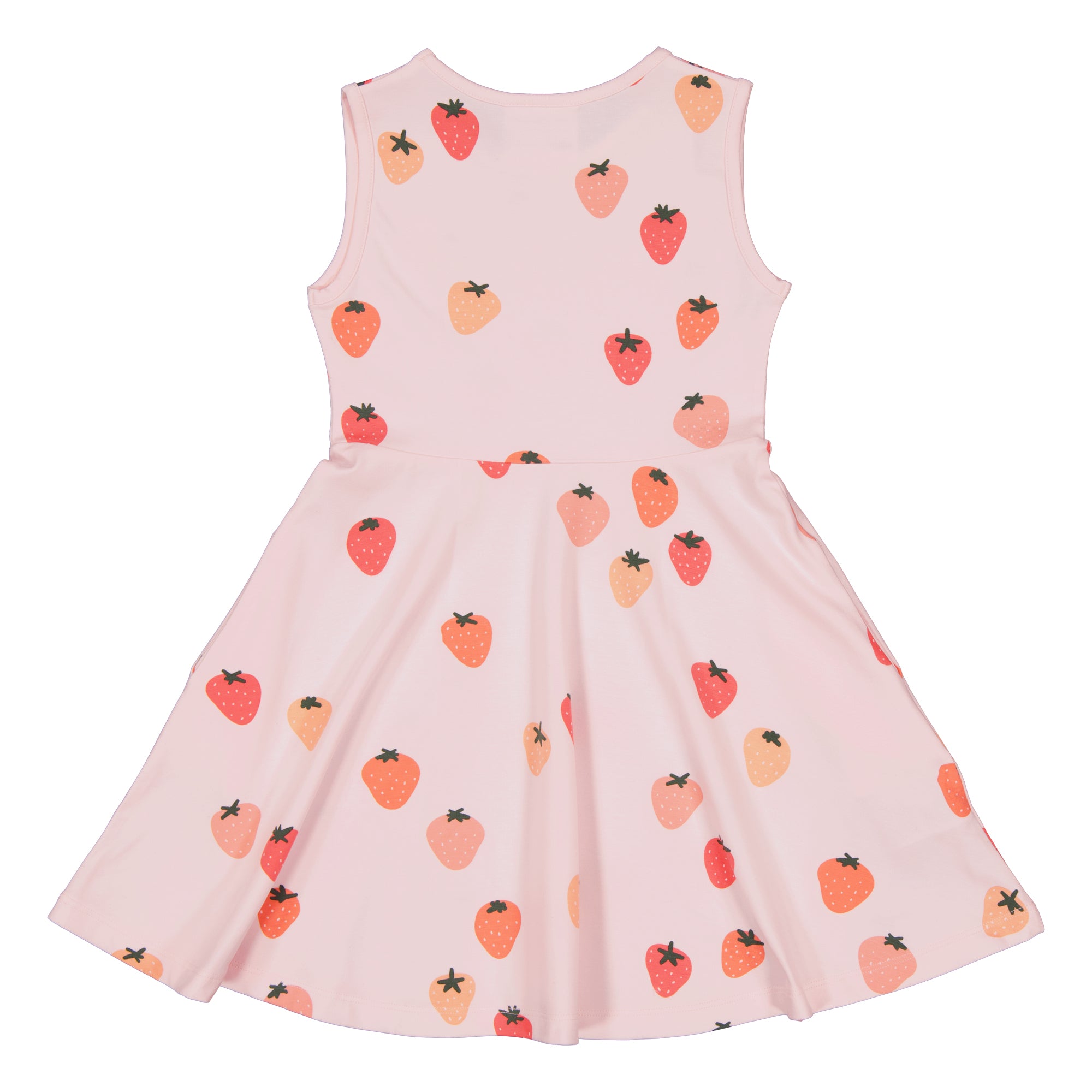 Kleid ohne Ärmel und mit weitem Rockteil.