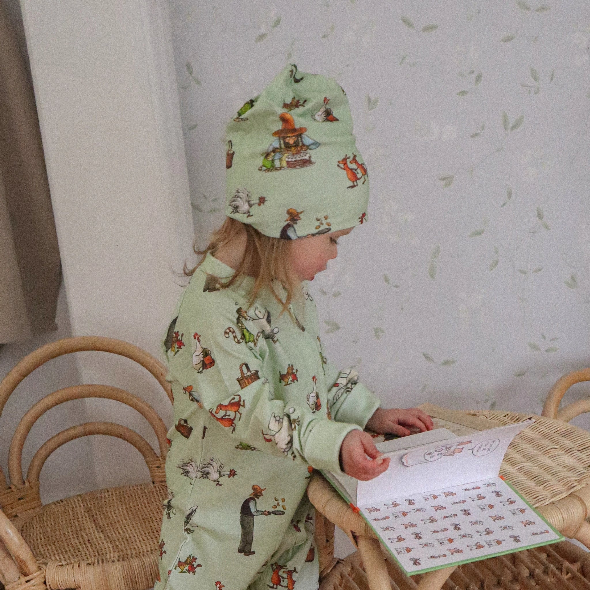 The most beautiful hat with motifs by Pettson & Findus. The hat is suitable for spring, summer and autumn and has Geggamoja's lovely fit that suits everyone, small and large.
