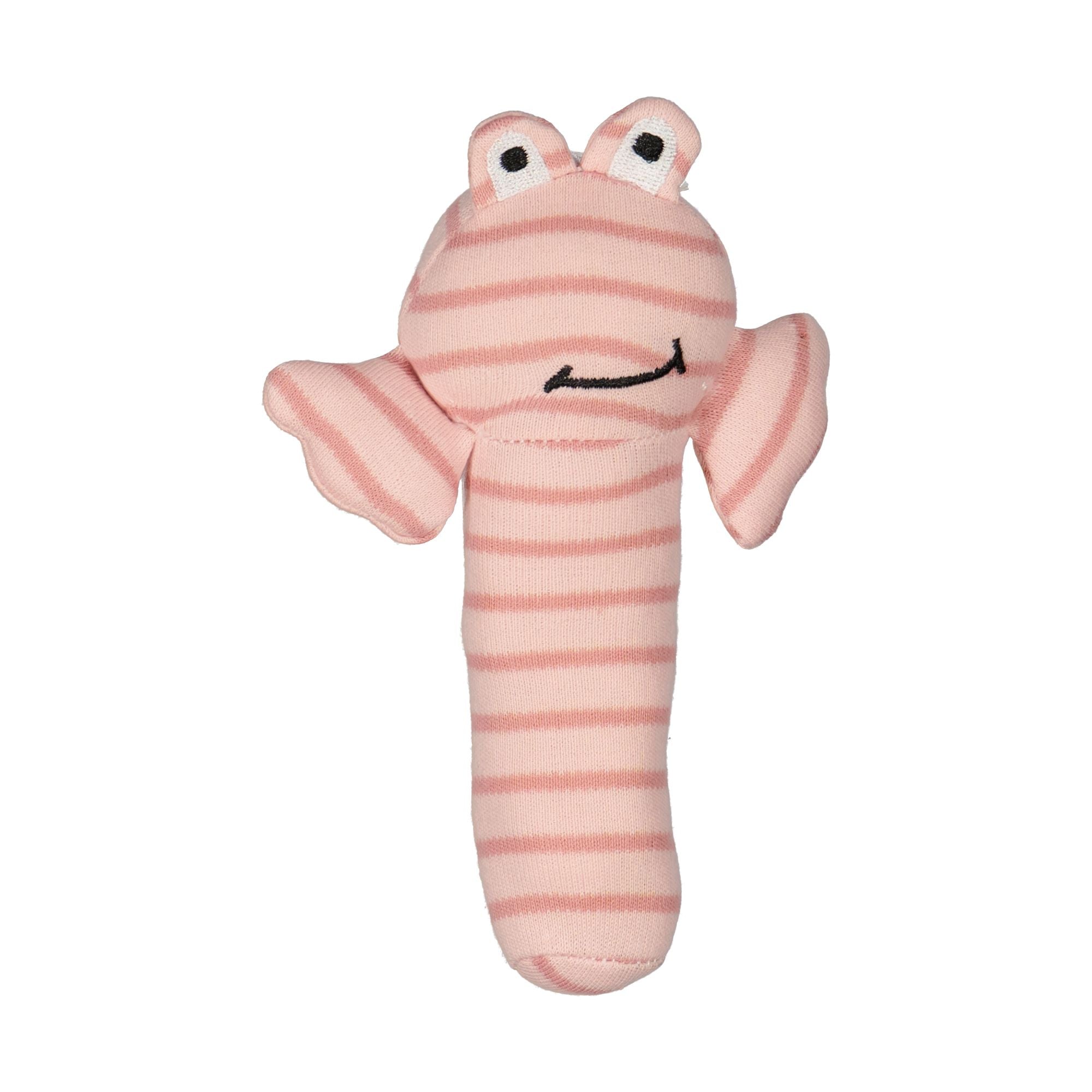 Frog rattle that is easy for children to hold. Made of soft organic GOTS cotton. 15 cm