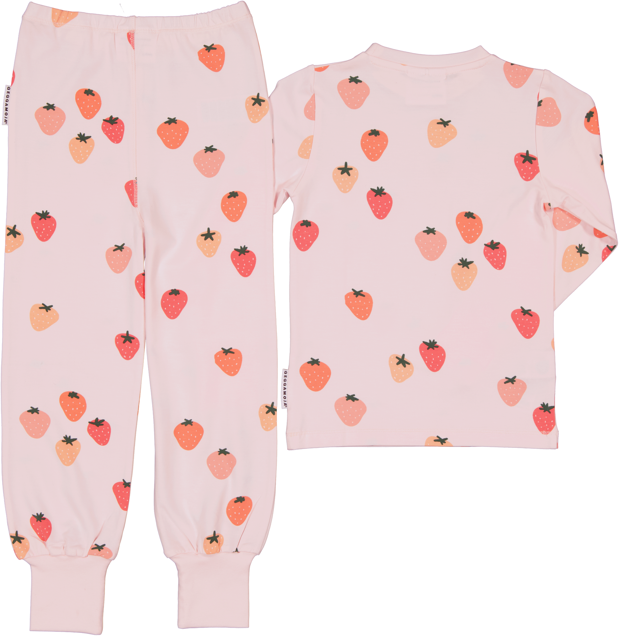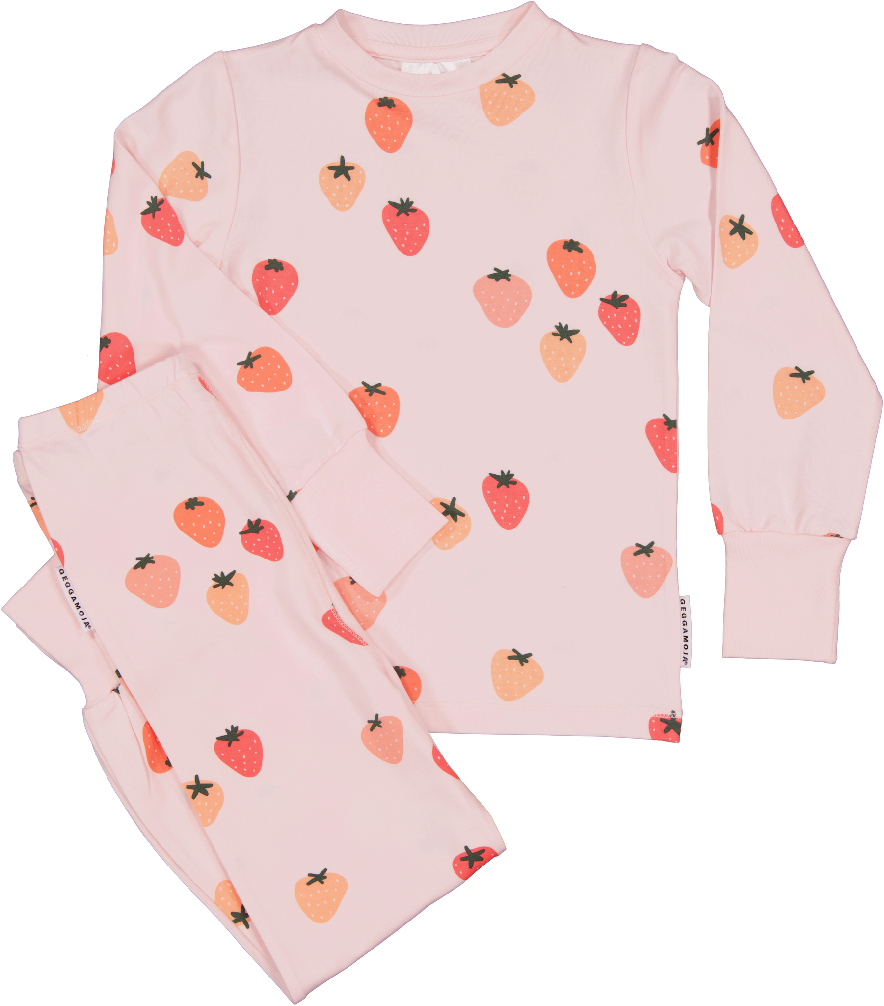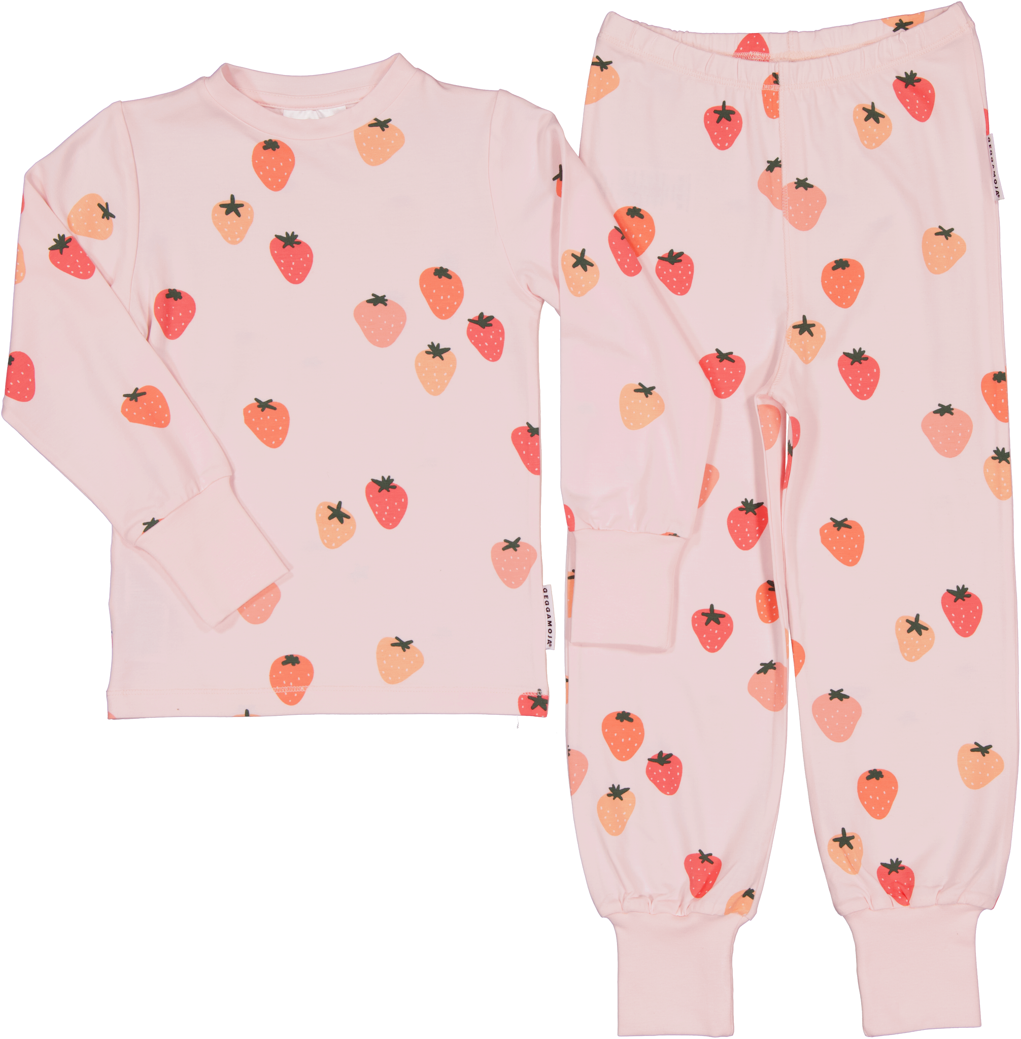 Todelt pysjamas i myk og behagelig bambusstoff. Pysjamasen består av et par bukser med strikk i livet og brede mansjetter, samt en langermet genser med mansjetter. Bambus er et miljøvennlig materialvalg, det dyrkes helt økologisk uten sprøytemidler og er 100 % biologisk nedbrytbart. Bambus er glatt og behagelig mot huden og lar huden puste. Dets termiske egenskaper er de samme som ull og silke, noe som gjør at materialet føles varmt når det er kaldt og svalt når det er varmt – et perfekt materiale for barneklær.