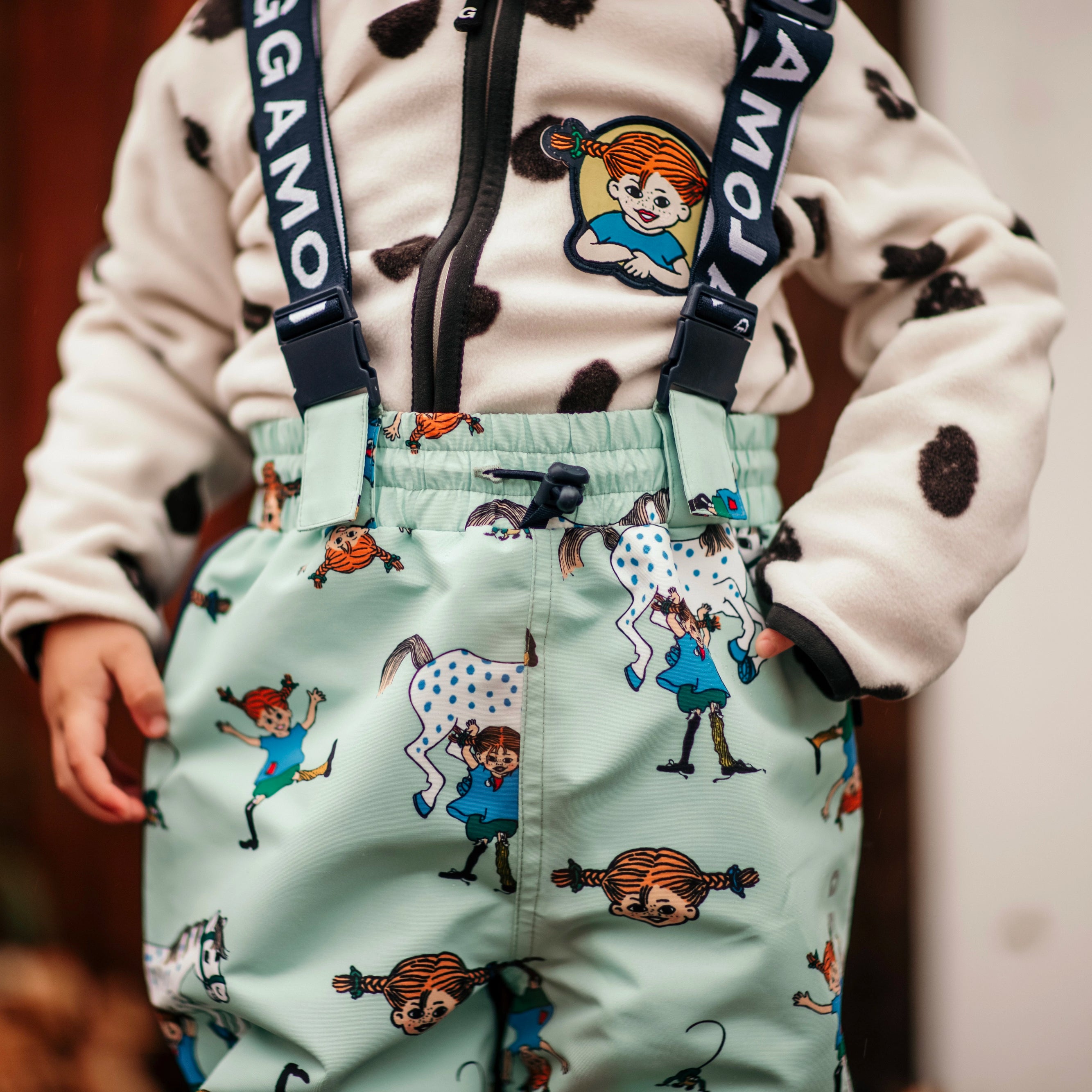 Denne myke og varme fleecejakken er like rampete som Pippi selv! Med Lilla Gubbens prikker som mønster blir den en skikkelig favoritt for små eventyrere. Perfekt som vår- og høstjakke eller som et behagelig lag 2 under kjøligere dager. Jakken har elastiske kantbånd som gjør at den sitter godt på plass, enten man klatrer i trær eller hopper i vanndammer. Glidelåsen foran gjør det enkelt å ta på jakken raskt – for hvem har tid til å krangle når det finnes verdener å oppdage? En koselig og rampete fleecejakke for små oppdagere som ikke er redde for å gjøre verden litt morsommere.