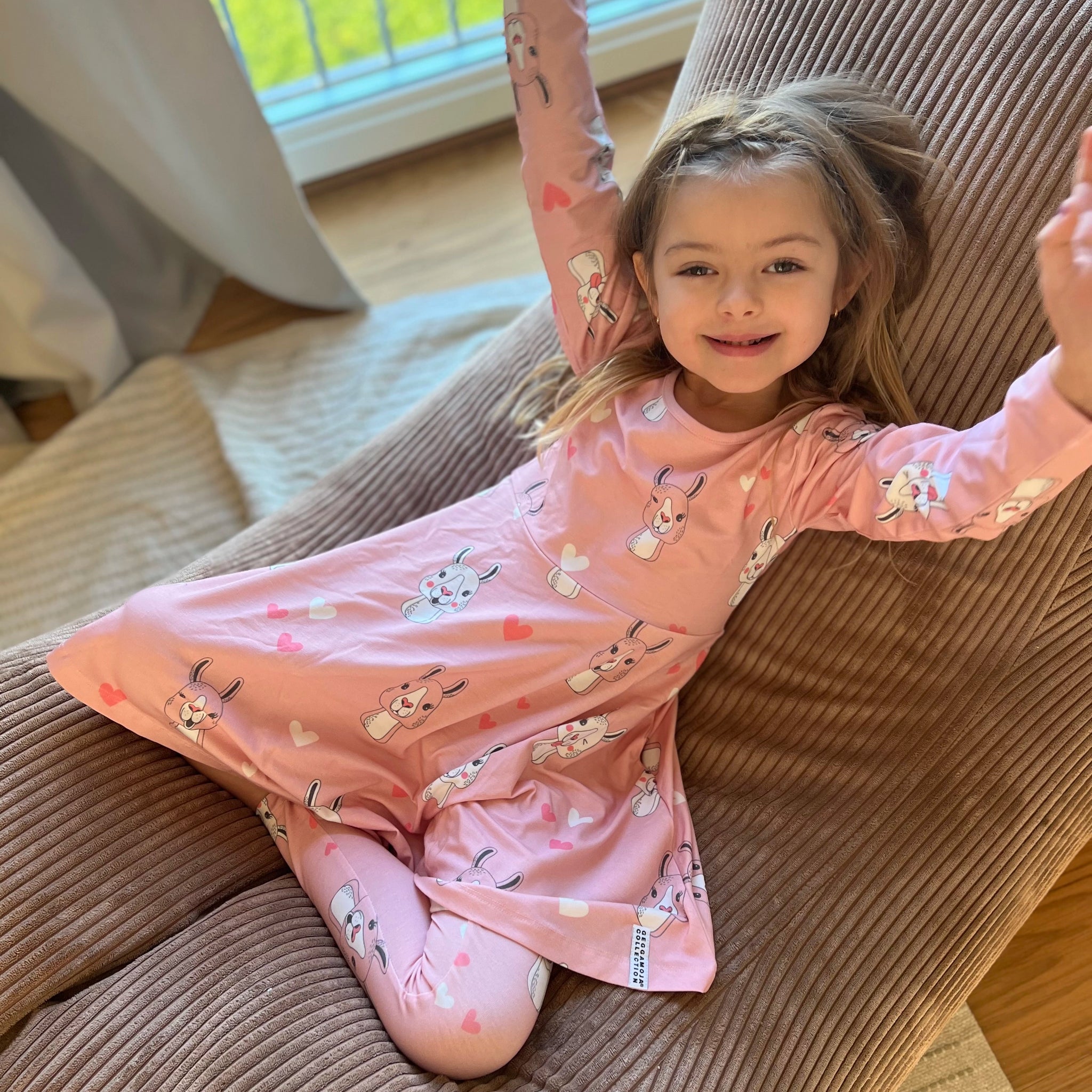 Leggings i bambu-strikk med justerbar strikk i midjen. Match med t-skjorte, gensere eller kjole. Bambus er et miljøvennlig materialvalg, det dyrkes helt organisk uten plantevernmidler og er 100 % biologisk nedbrytbart. Bambus er behagelig mot huden og lar huden puste. Dets termiske egenskaper, som ull og silke, gjør at materialet føles varmt når det er kaldt og kaldt når det er varmt – et perfekt materiale for barneklær.