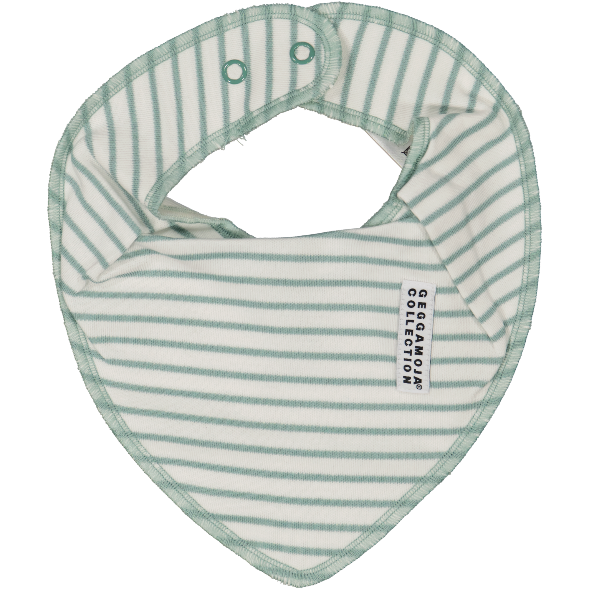 Smekke/dregellapp i Geggamojas klassiske striper lys grønn og grønn. Laget av et vanntett øko-tex-sertifisert polyestermembran. Trykknapper som lukking og justering bak.