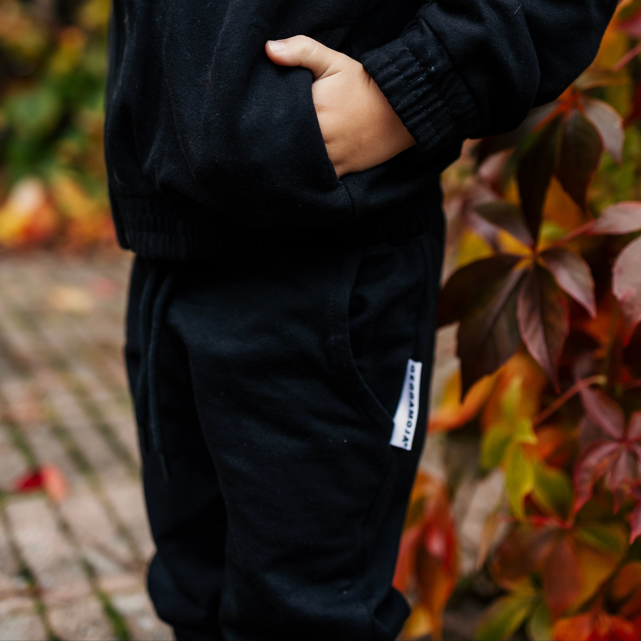 Collegebyxa med resår i benslut. Regulerbar med hullresår i midjen.