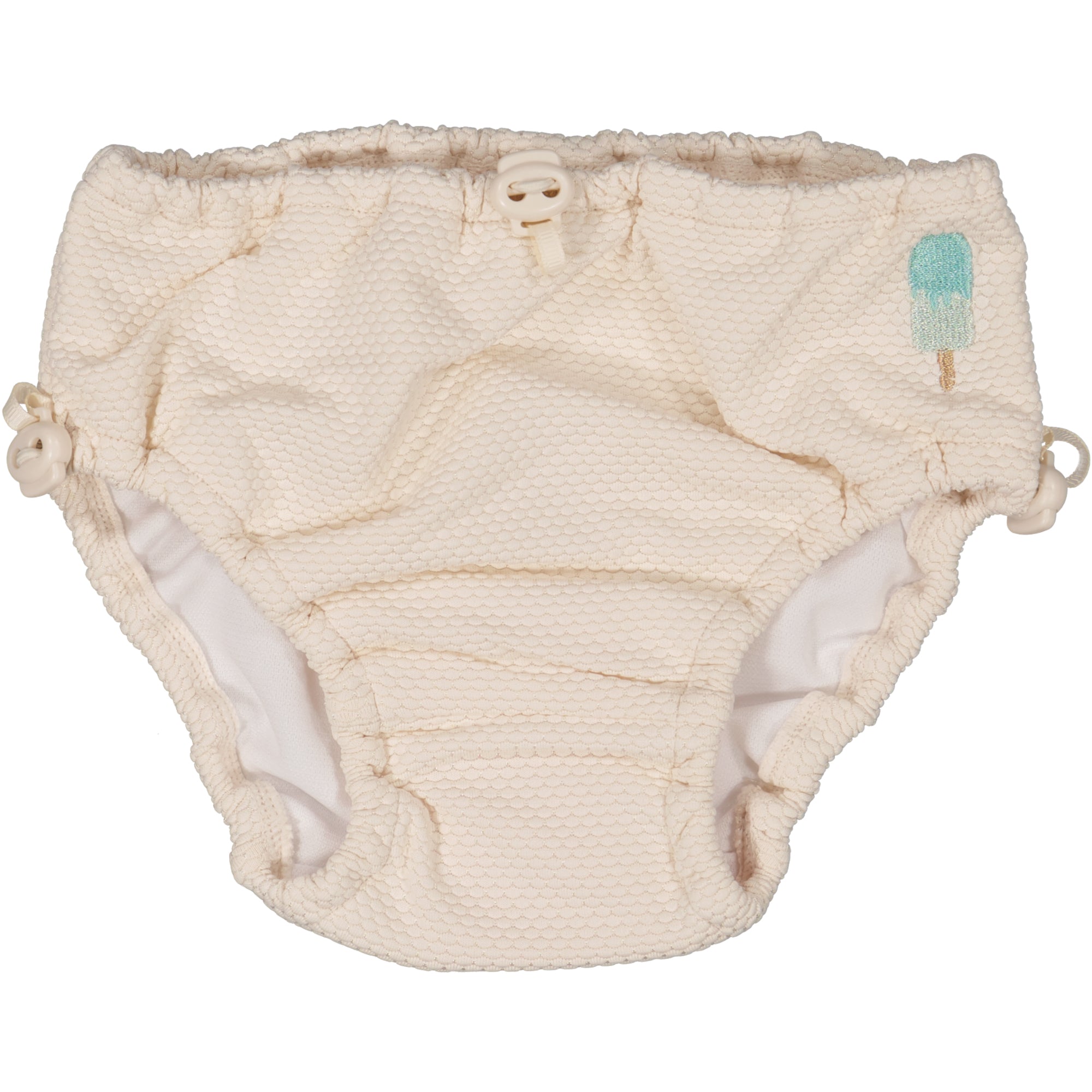 Geggamojas UV babybukse, med UV50+ blokkerer 98 % av solens farlige UVA- og UVB-stråler. Justerbar strikk med snor i livet og i benåpningen for å sikre at den sitter godt og holder tett selv når den er våt. Denne badebuksa er perfekt til babysvømming. Det trengs ingen ekstra bleie eller innlegg under badebleien.