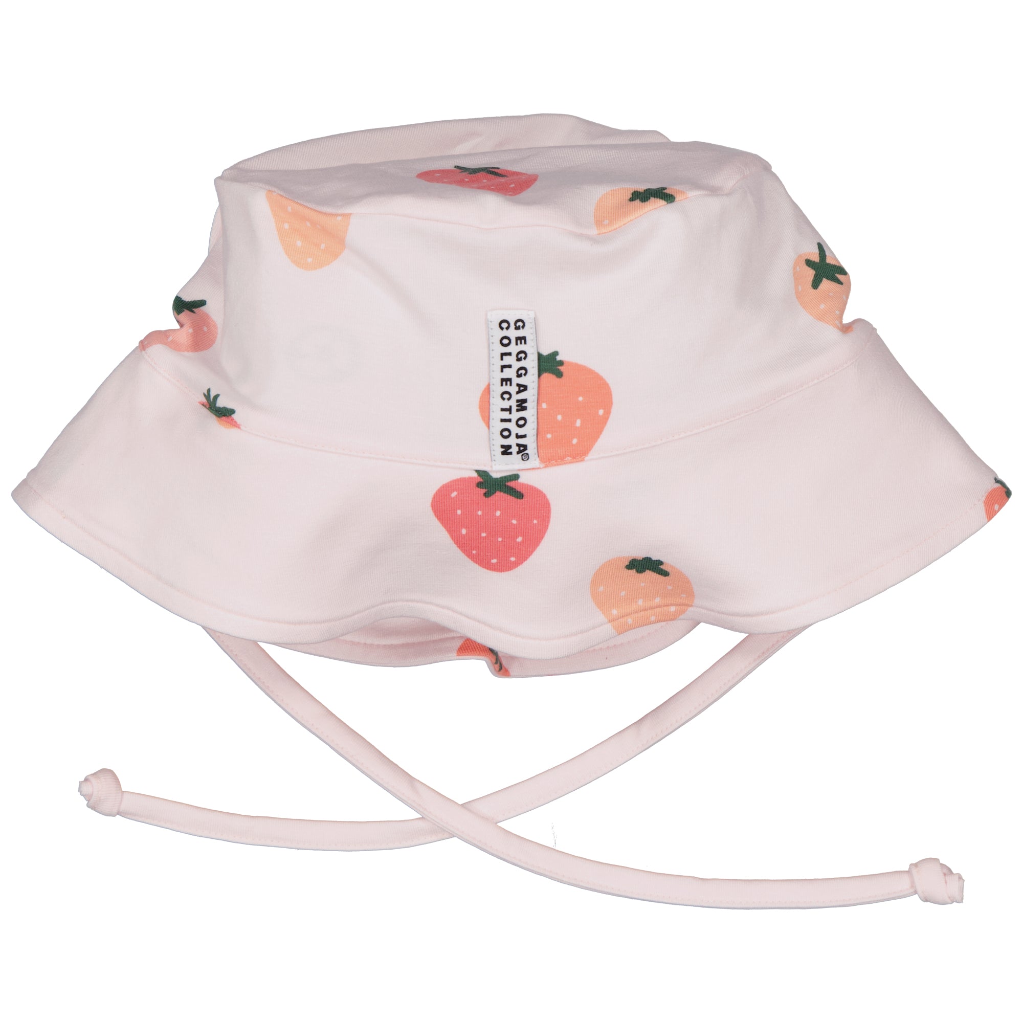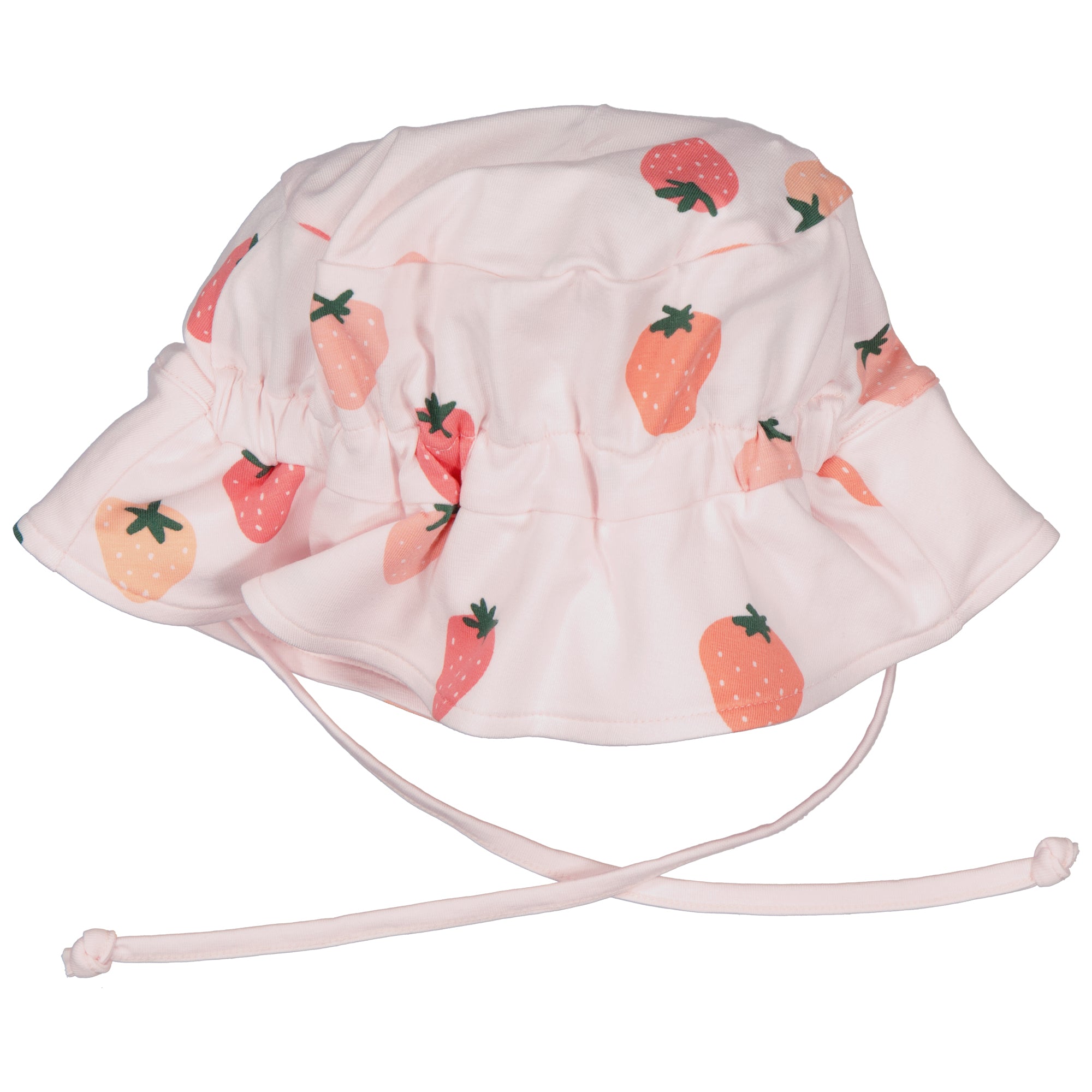 Solhatt med knytesnorer. Laget av myk bambusbomull.