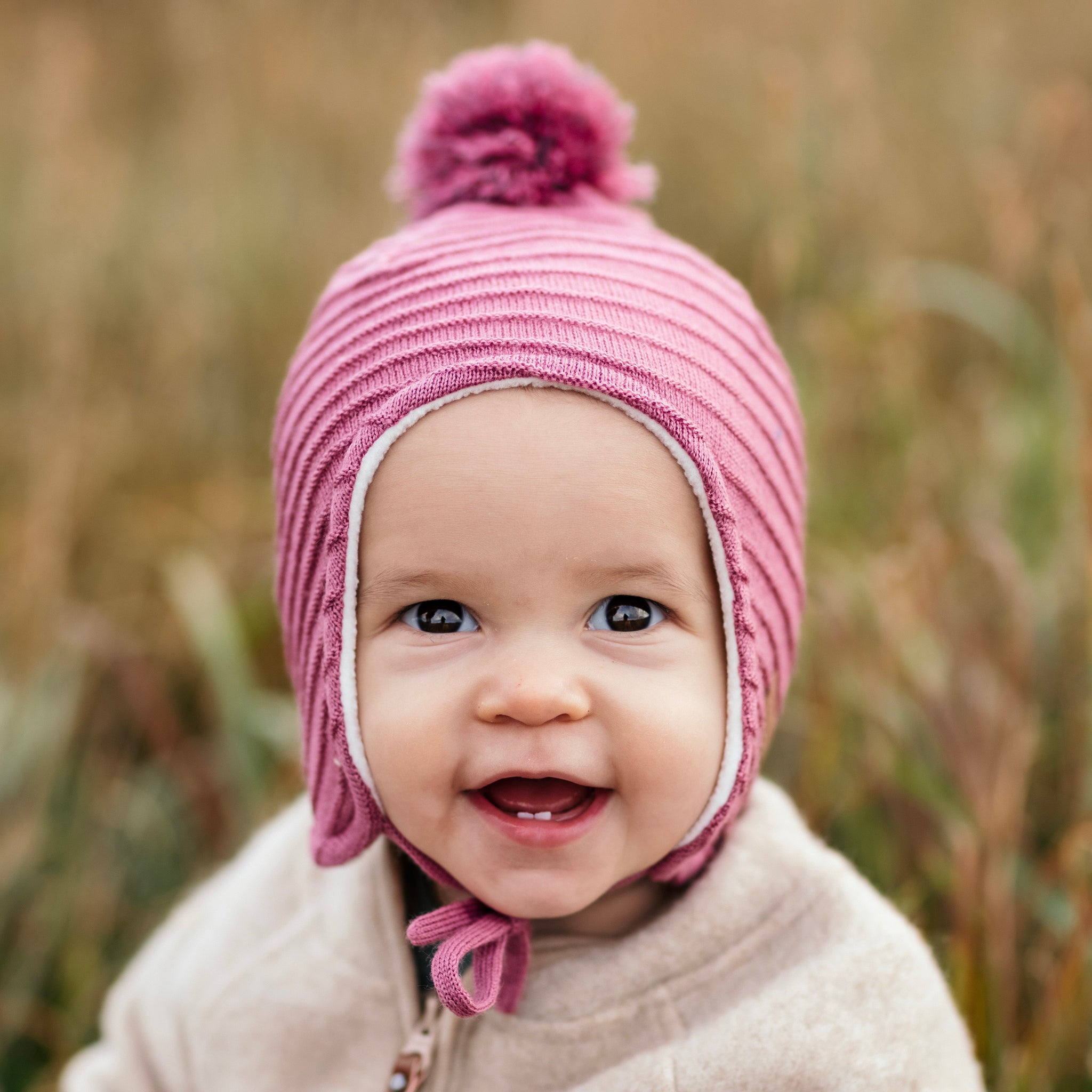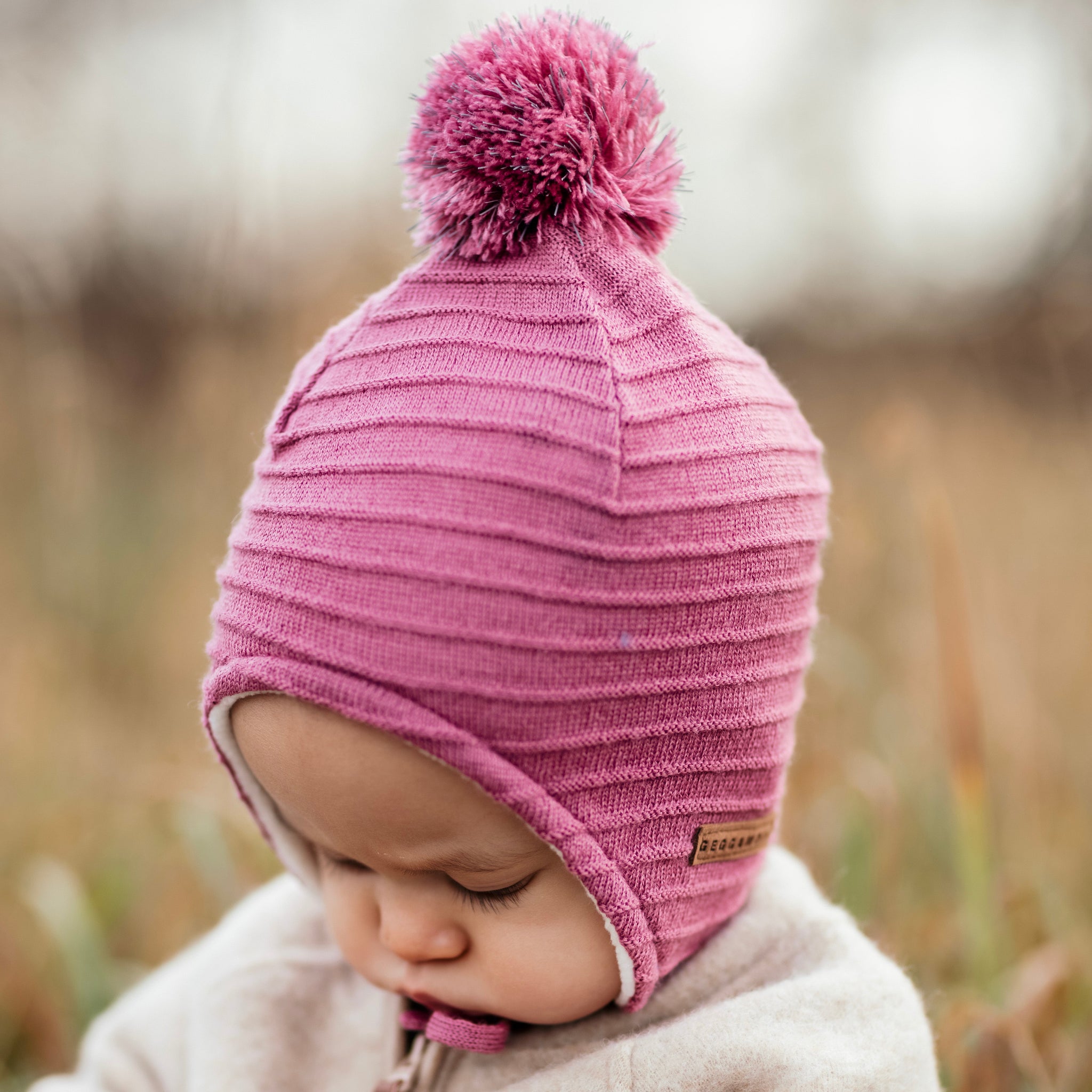 Strikket hjelmhette rosa