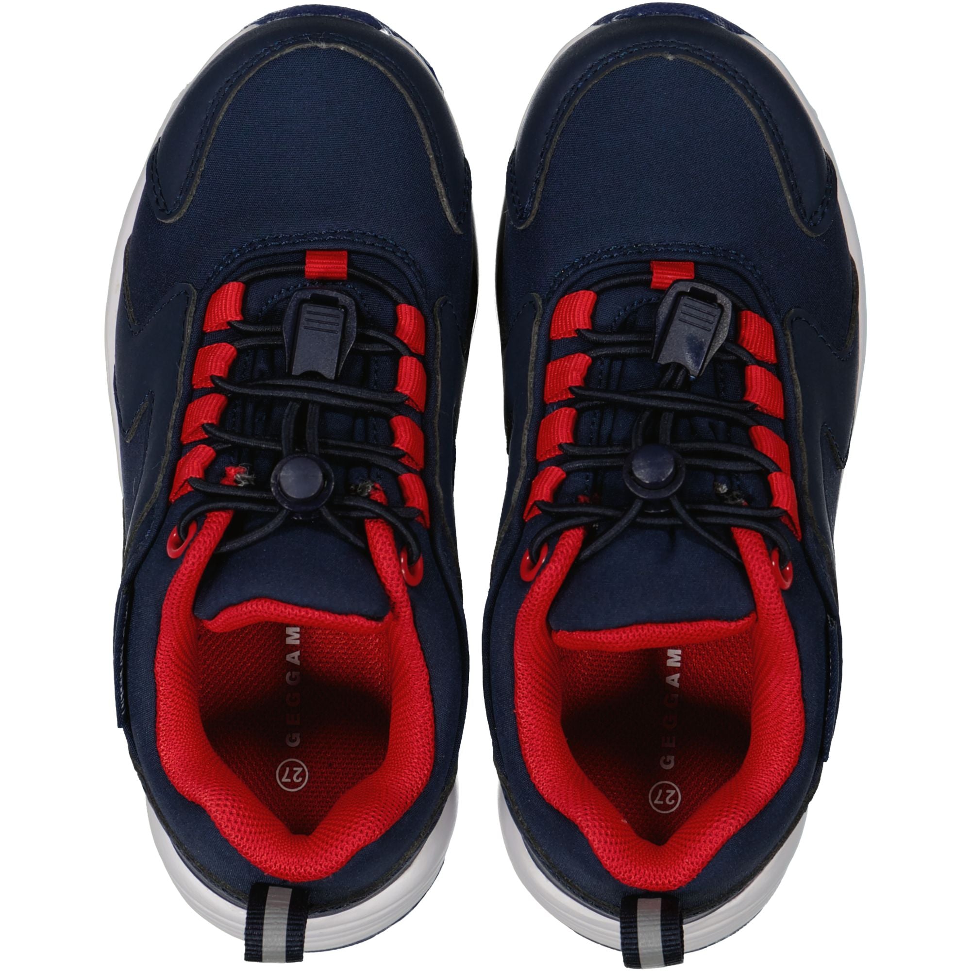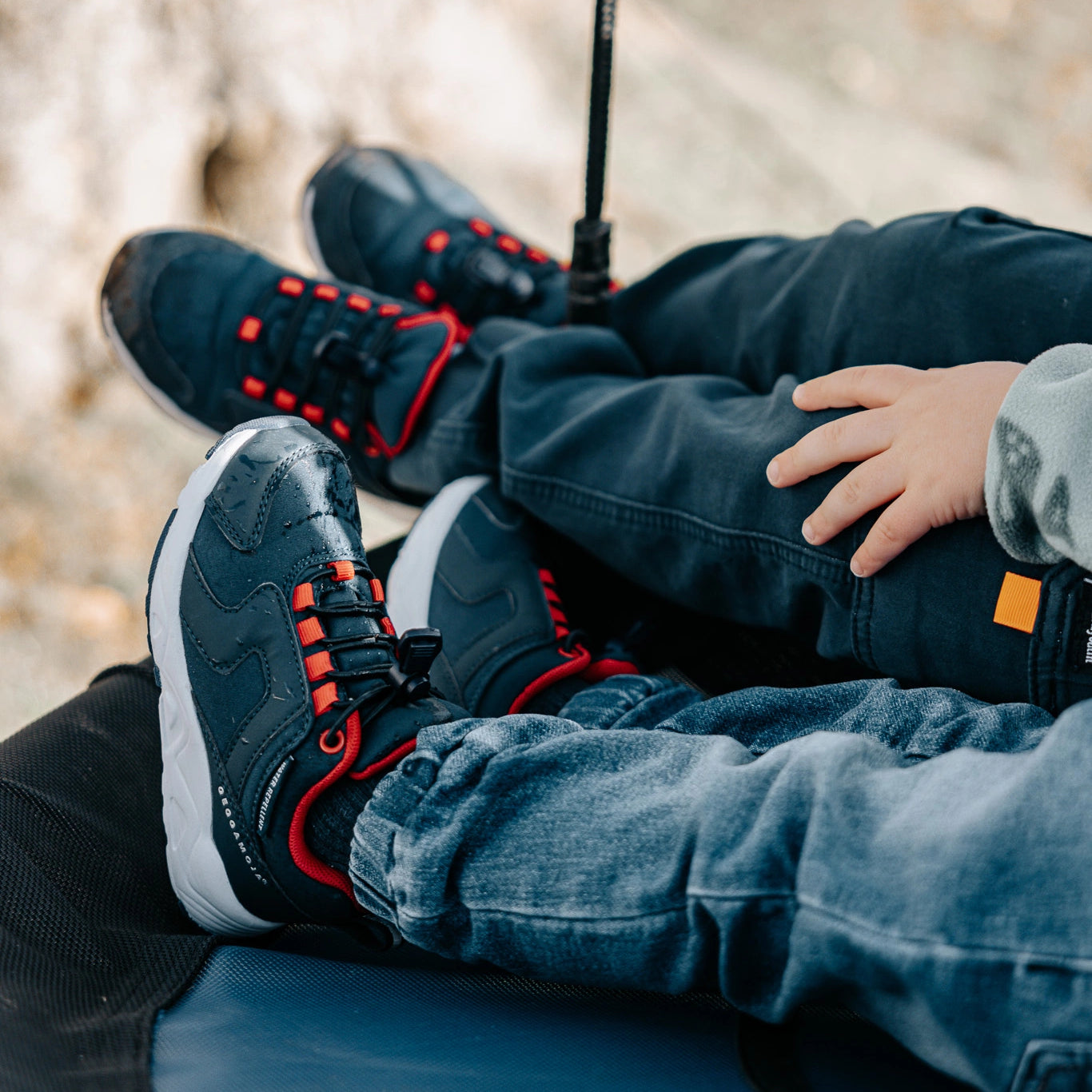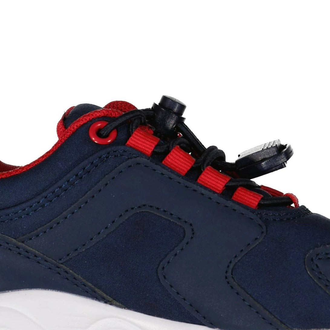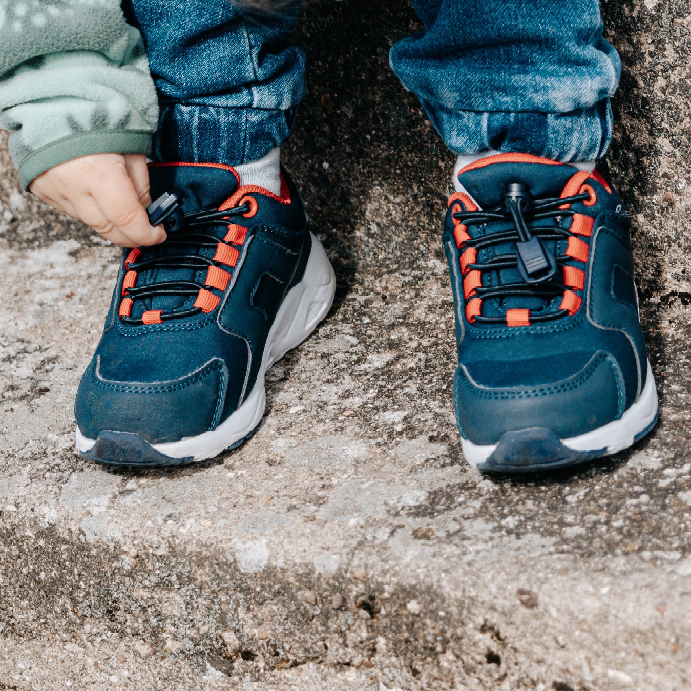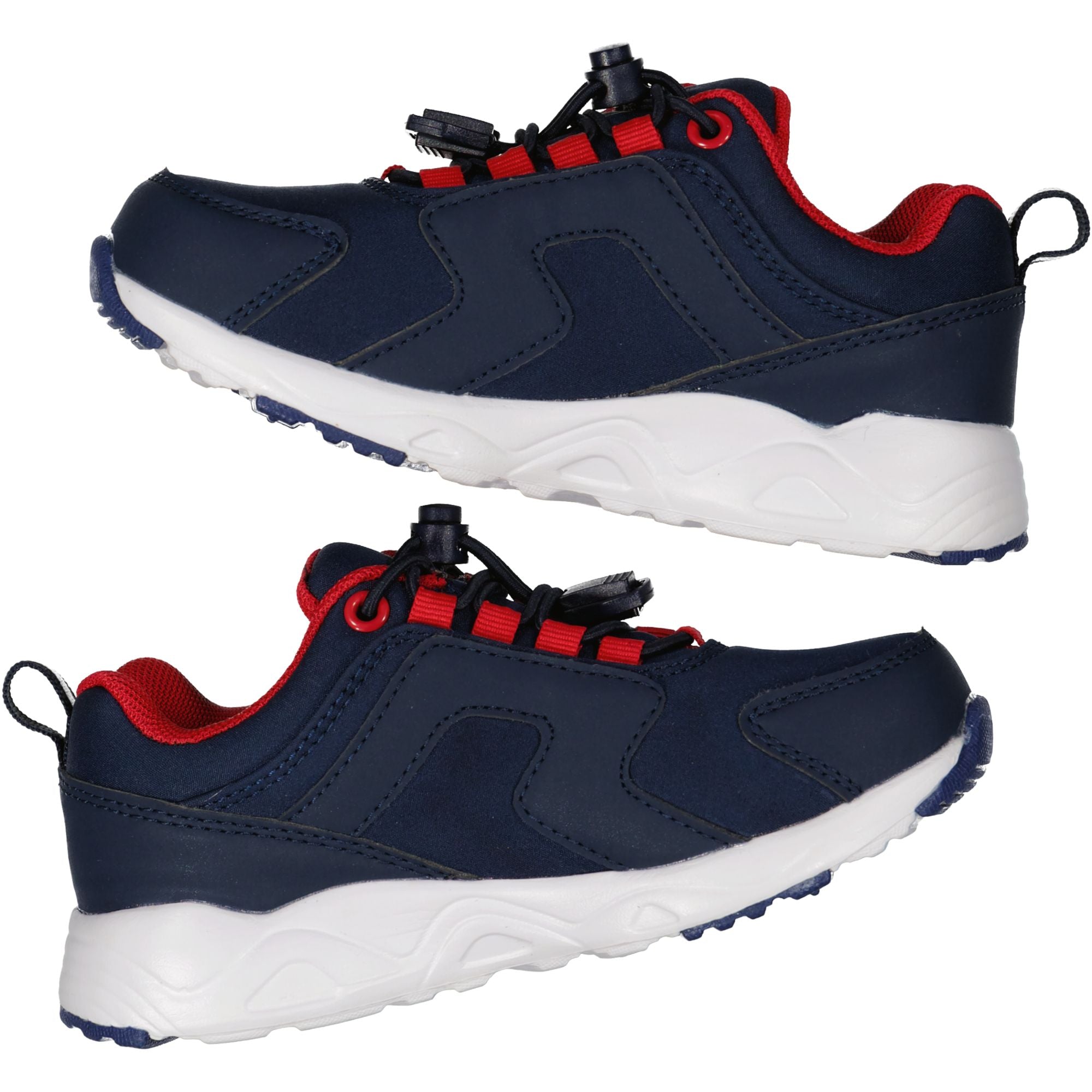 Marinblå vattenavvisande sneakers i softshell. Skon har elastiska snoddar med praktisk stopper, för enkel av- och påtagning. Mjuk och lätt sula i EVA/TPR. Skon är behandlade med PU-coating.